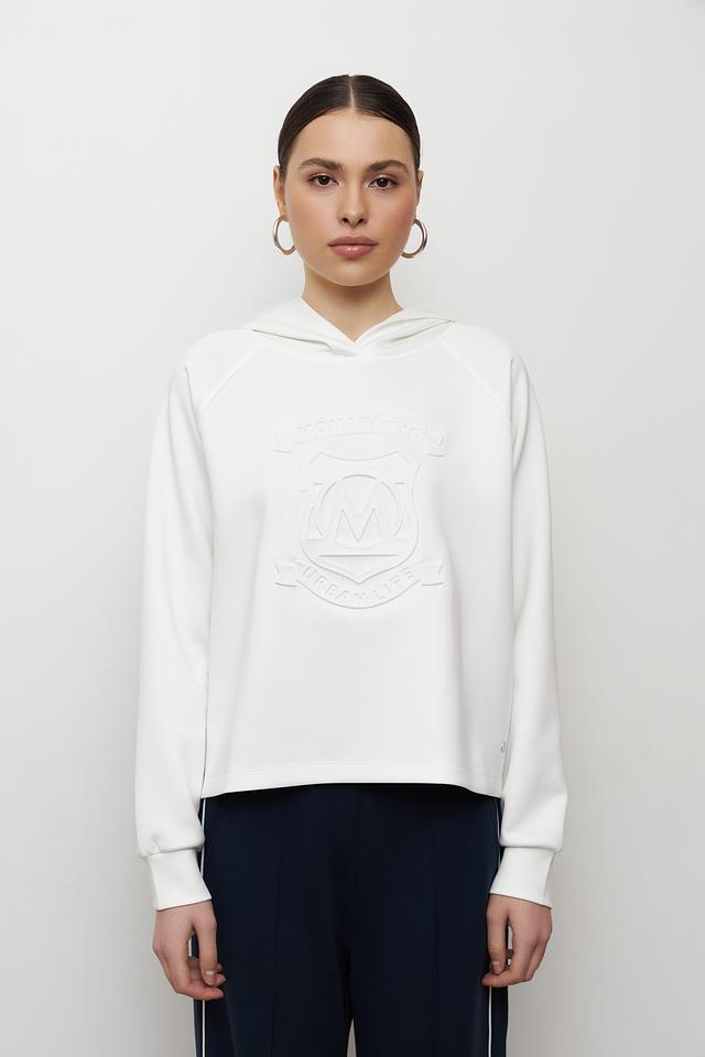 Белый пуловер Monari с вышитым логотипом — стильная и комфортная модель для повседневного образа. Удобный крой и качественный состав обеспечивают приятные ощущения при носке. Состав: полиэстер 96%, эластан 4%