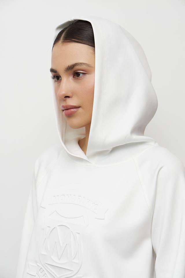 Передняя часть пуловера украшена рельефным логотипом бренда, что придает ему узнаваемый и стильный вид. Пуловер имеет капюшон, который добавляет практичности и позволяет создавать различные образы.
