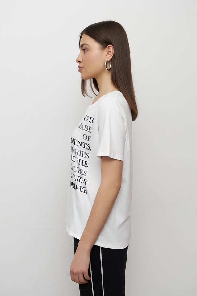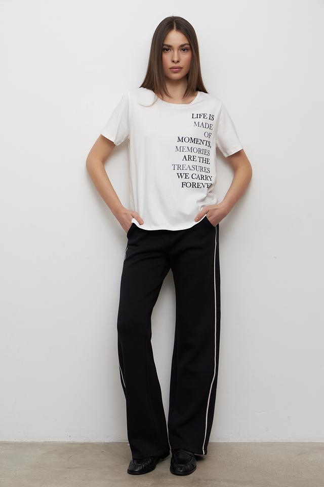 Особенностью данной модели является стильный принт с надписью на лицевой стороне, который придаёт ей индивидуальность и современный вид. Футболка имеет прямой крой, который подходит для любой фигуры.
