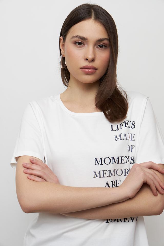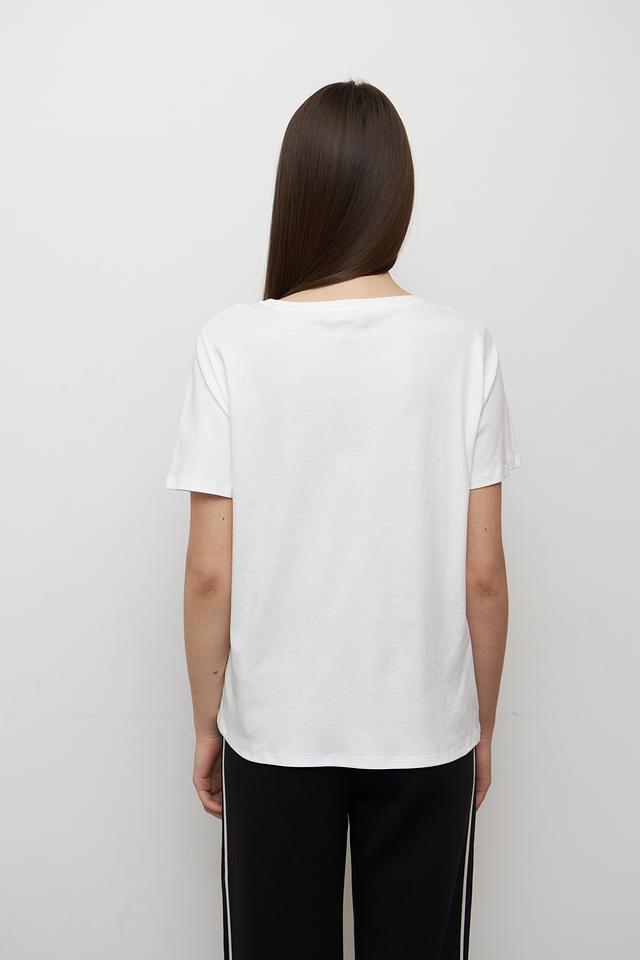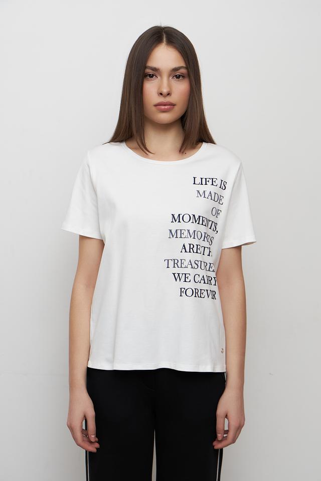 Белая футболка Monari с оригинальным принтом – стильное и комфортное решение для повседневного образа. Изготовлена из 100% хлопка, обеспечивающего приятные ощущения на коже и свободу движений. Состав: хлопок 100%
