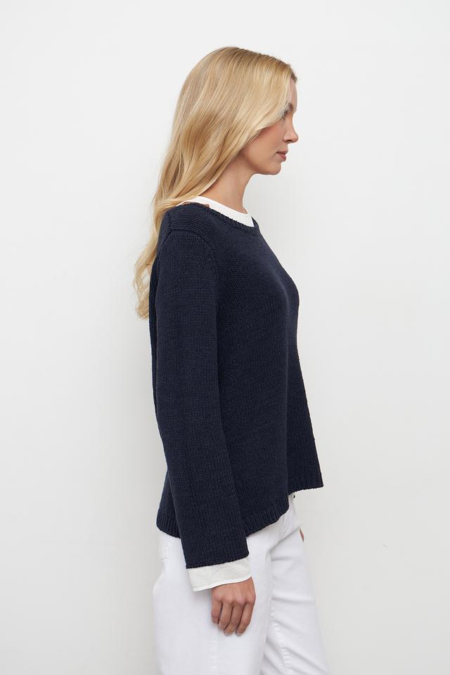 Пуловер изготовлен из высококачественного хлопка с добавлением полиамида, что обеспечивает мягкость, комфорт и долговечность изделия. Круглый вырез горловины и длинные рукава делают его идеальным для прохладной погоды.