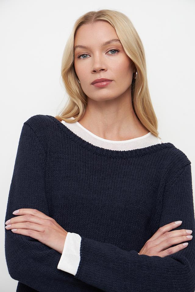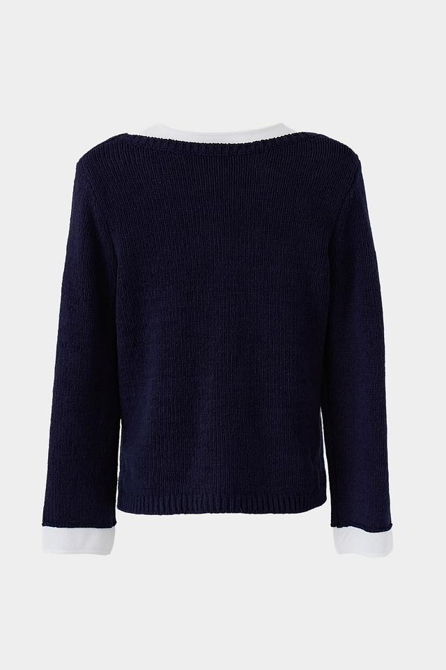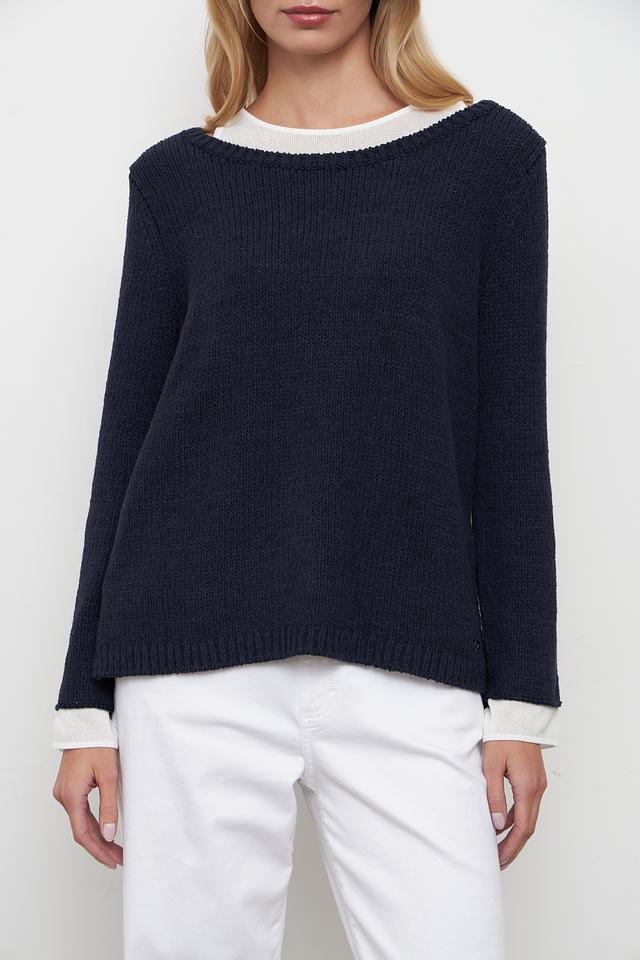 Тёмно-синий пуловер Monari из хлопка с полиамидом – это стильная и комфортная модель на каждый день. Пуловер имеет классический крой и круглый вырез горловины, а также отделку белым воротником и манжетами. Состав: хлопок 70%, полиамид 30%