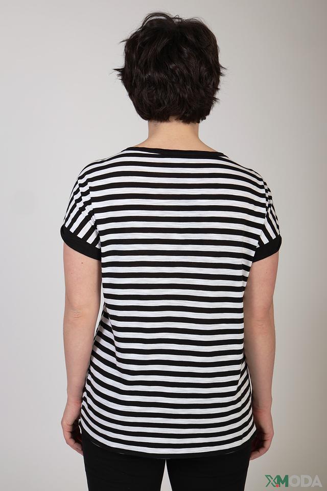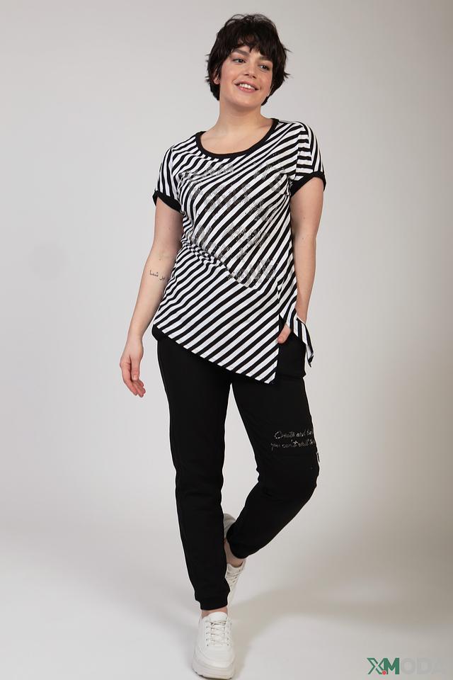 Блуза Monari чёрно-белого цвета с полосатым принтом и отделкой стразами станет стильным дополнением к вашему гардеробу. Модель свободного кроя из хлопка и модала обеспечит комфорт в течение дня. Состав: хлопок 50%, модал 50%