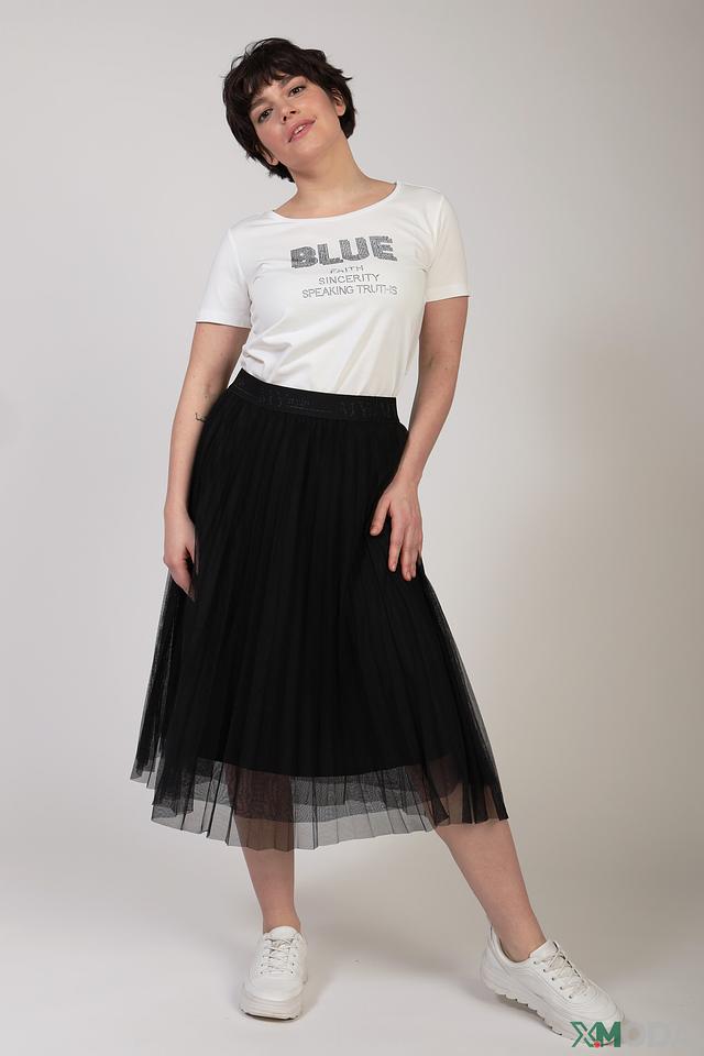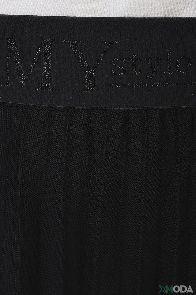 На поясе присутствует надпись "My style", выполненная в тон ткани. Юбка идеально подходит для создания как повседневных, так и вечерних образов. Состав: 100% полиэстер.