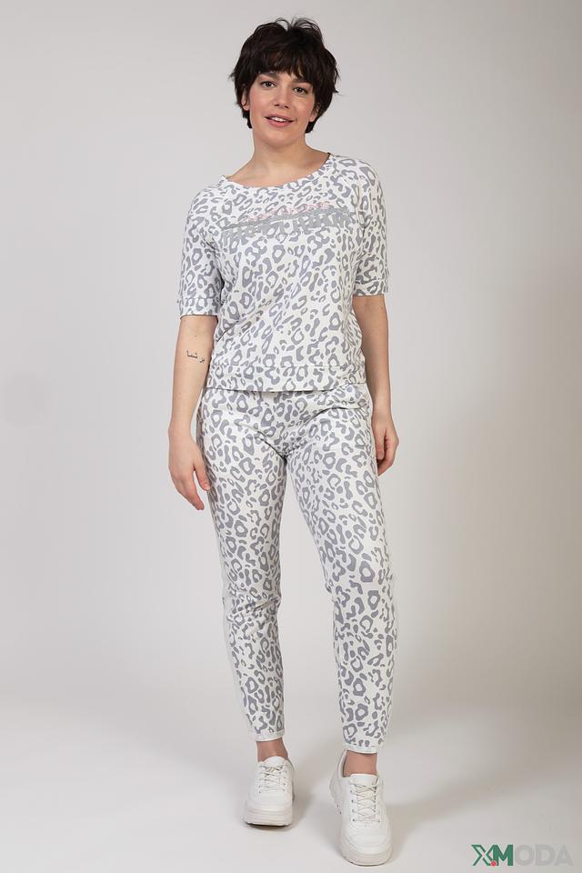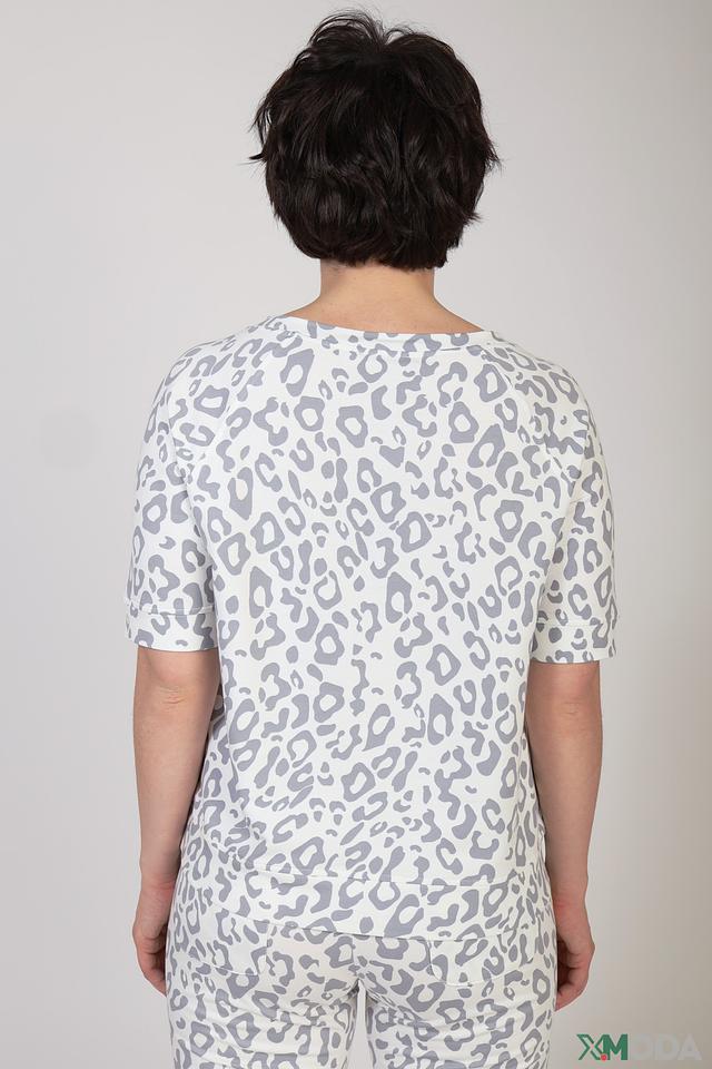 Женская футболка Monari белого цвета с оригинальным леопардовым принтом и декоративной отделкой. Модель выполнена из мягкого и приятного к телу трикотажа, обеспечивающего комфорт в носке. Состав: хлопок 60%, модал 30%, эластан 10%