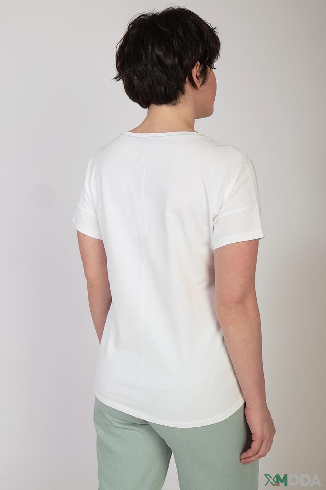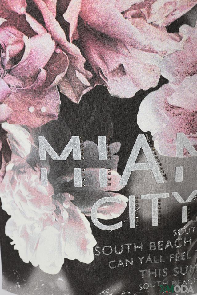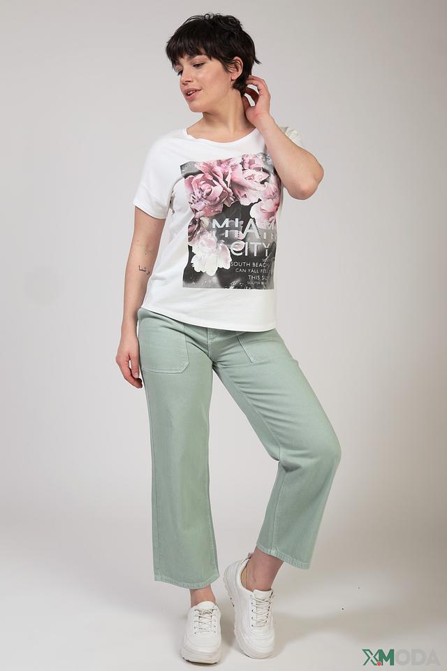 Белая футболка Monari с ярким цветочным принтом и надписью "Miami City". Модель из мягкого хлопка с модалом, обеспечивающим комфорт и приятные ощущения при носке. Состав: хлопок 50%, модал 50%