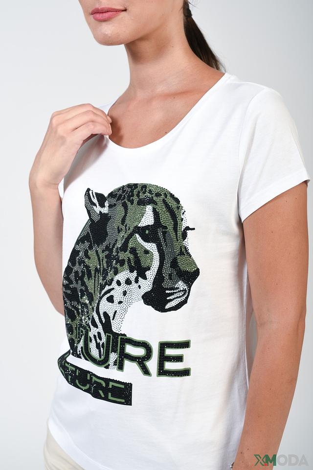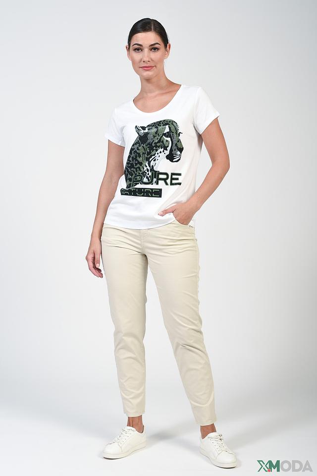 Белая футболка Monari с эффектным принтом леопарда – стильное и комфортное решение для повседневного образа. Изготовлена из мягкого хлопка с модалом, обеспечивающего приятные ощущения на коже. Состав: хлопок 50%, модал 50%