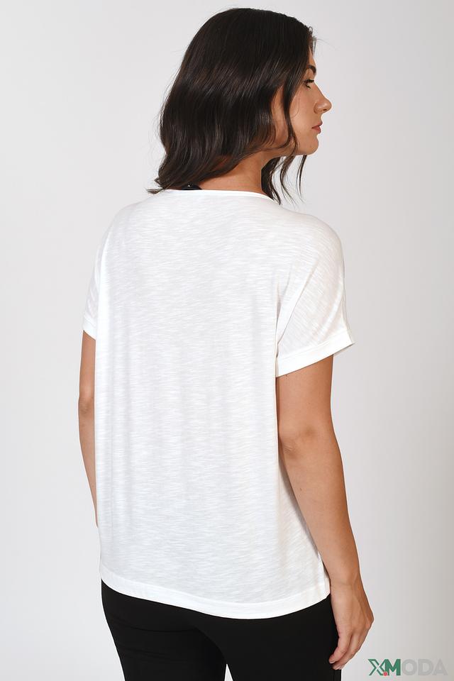 Модель имеет свободный крой, который обеспечивает комфорт и свободу движений. Короткие рукава и округлый вырез горловины делают футболку универсальной и подходящей для различных образов.