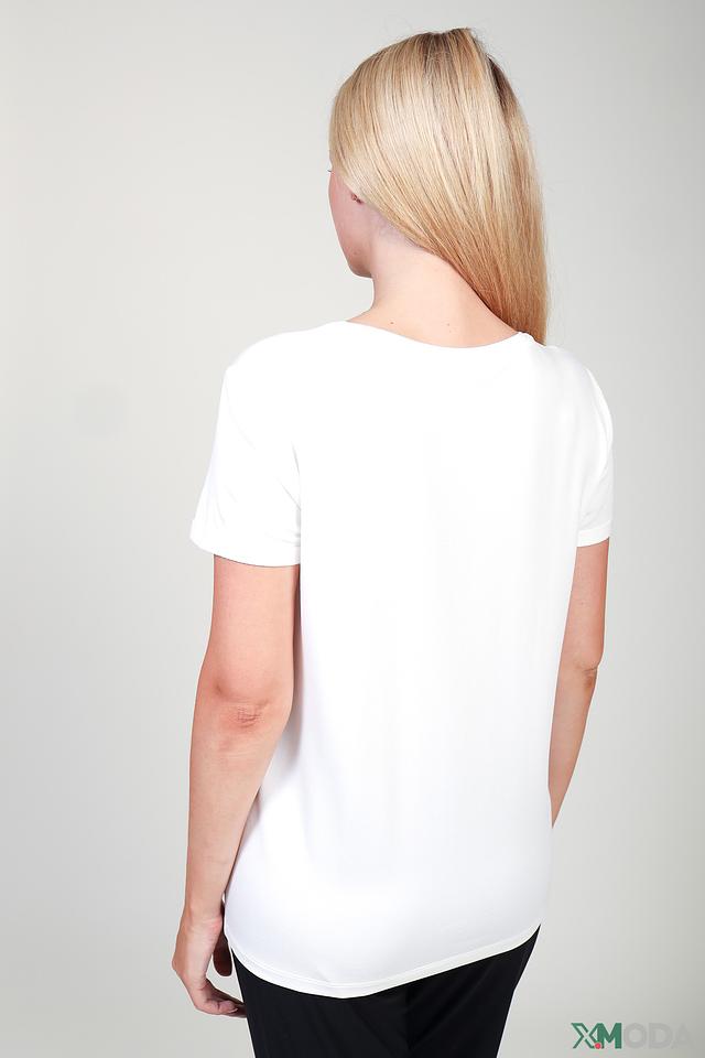 Эта белая футболка от Monari станет ярким акцентом в вашем гардеробе. Она выполнена из приятной к телу ткани, сочетающей в себе 45% вискозы, 45% модала и 10% эластана, что обеспечивает комфорт при носке и отличную посадку по фигуре.