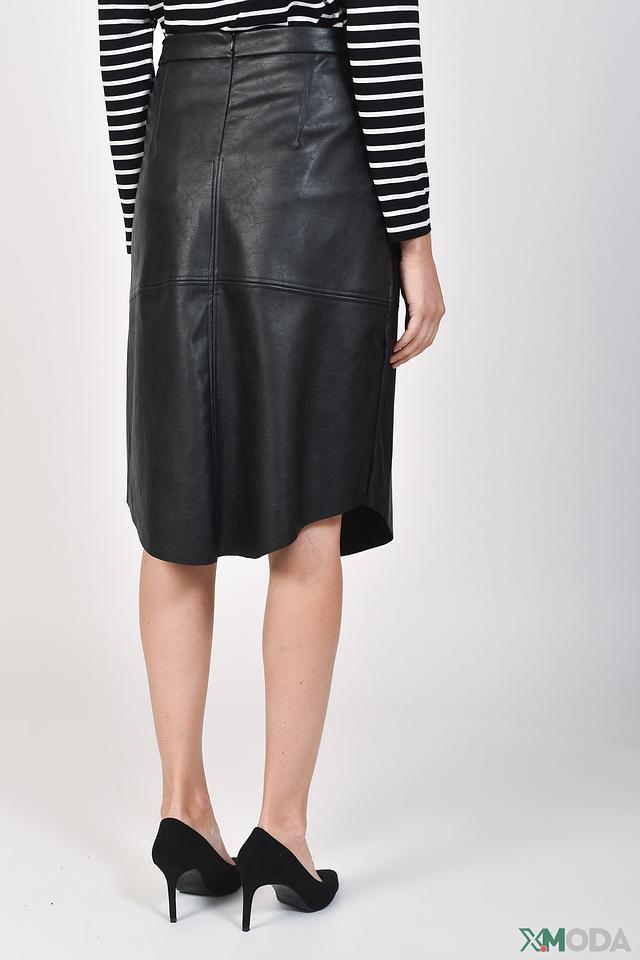 Чёрная юбка от Monari из экокожи с асимметричным низом и боковыми молниями. Стильный и современный дизайн, идеально подходит для создания эффектных образов. Состав: полиуретановые нити 60%, полиэстер 40%