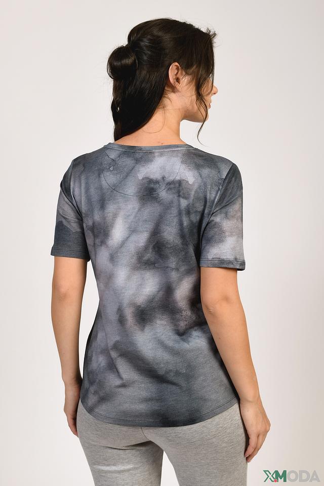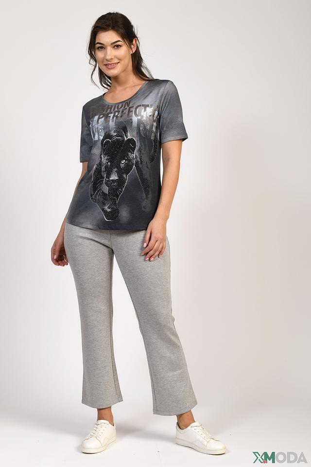 Женская футболка Monari серого цвета с эффектным принтом пантеры. Изготовлена из мягкого хлопка с модалом, обеспечивающего комфорт и приятные ощущения при носке. Стильный и современный выбор для повседневного образа. Состав: хлопок 50%, модал 50%