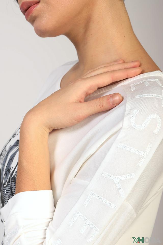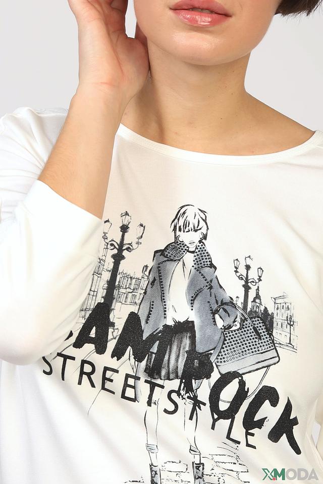 Белая футболка Monari с оригинальным принтом "Glamrock Streetstyle" станет стильным дополнением к вашему гардеробу. Модель свободного кроя с рукавом 3/4 выполнена из мягкой и приятной к телу ткани. Состав: вискоза 45%, модал 45%, эластан 10%