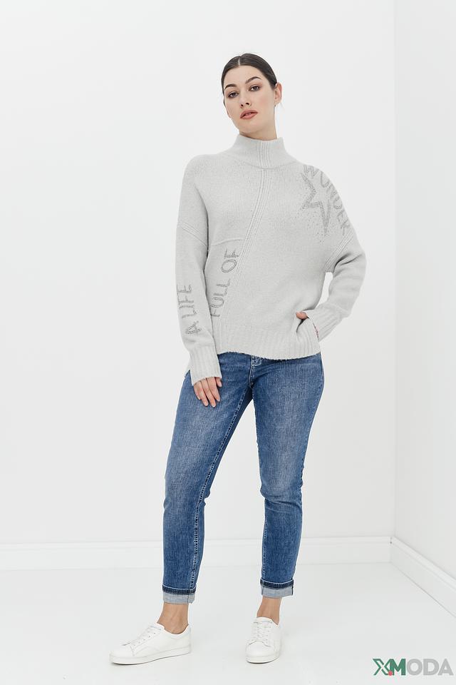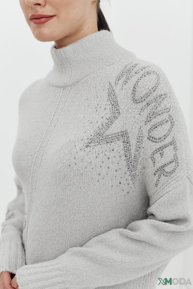 Серый пуловер Monari – это стильная и комфортная модель с оригинальным декором из страз и надписью. Высокий воротник и свободный крой делают этот пуловер идеальным выбором для создания уютных и модных образов. Состав: полиакрил 59%, шерсть 23%, полиамид 17%, эластан 1%