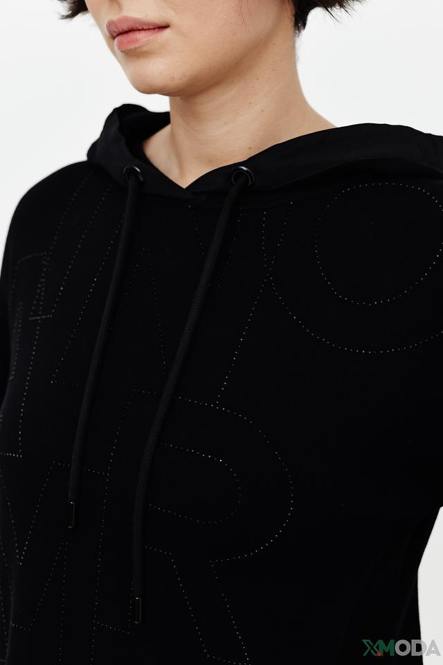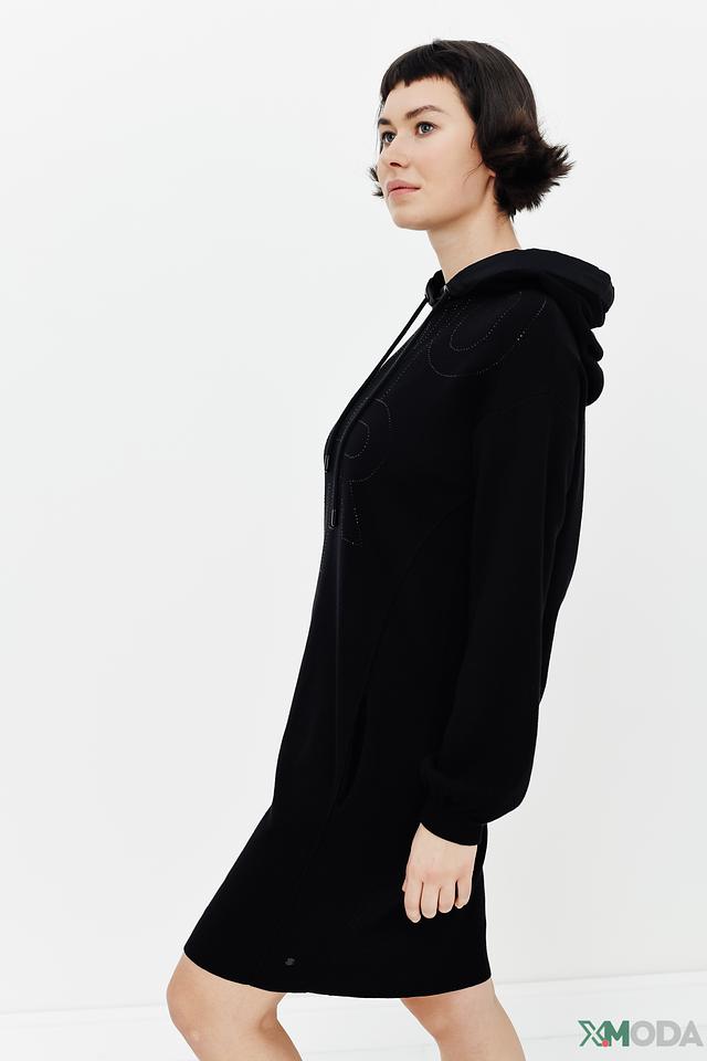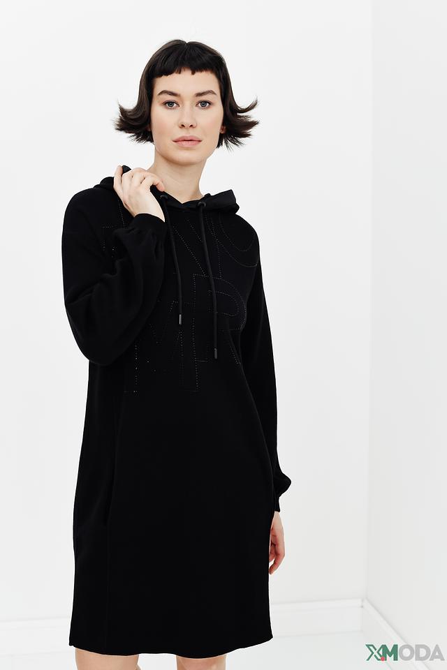Чёрное платье от Monari – это стильное и комфортное решение для повседневного гардероба. Модель выполнена из мягкого хлопка и украшена вышивкой на капюшоне, что придает ей особый шарм. Состав: хлопок 100%