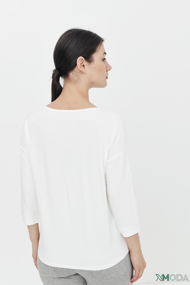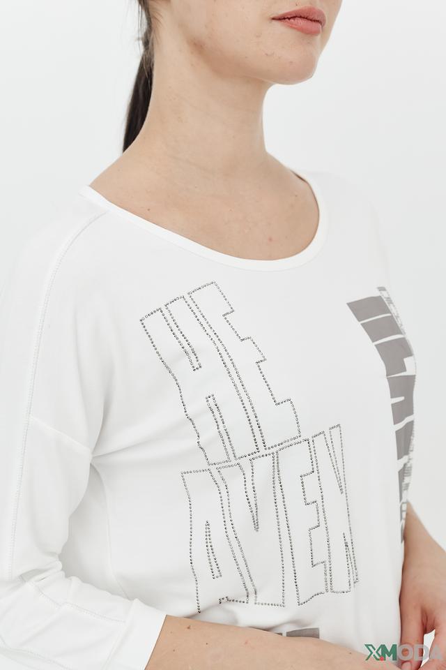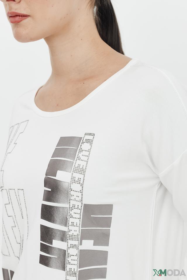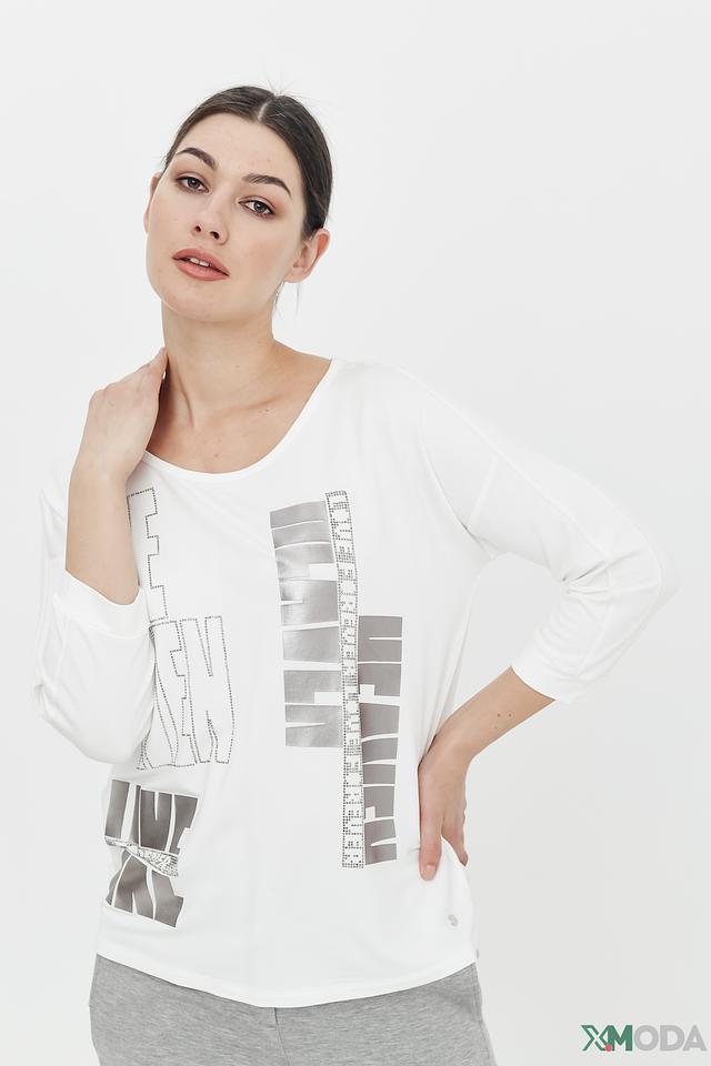 Белый лонгслив Monari с оригинальным графичным принтом. Модель выполнена из мягкой и приятной к телу ткани, обеспечивающей комфорт в носке. Идеально сочетается с джинсами и брюками. Состав: вискоза 45%, модал 45%, эластан 10%