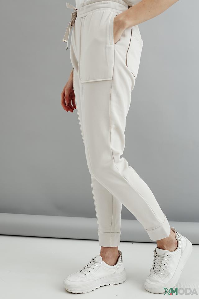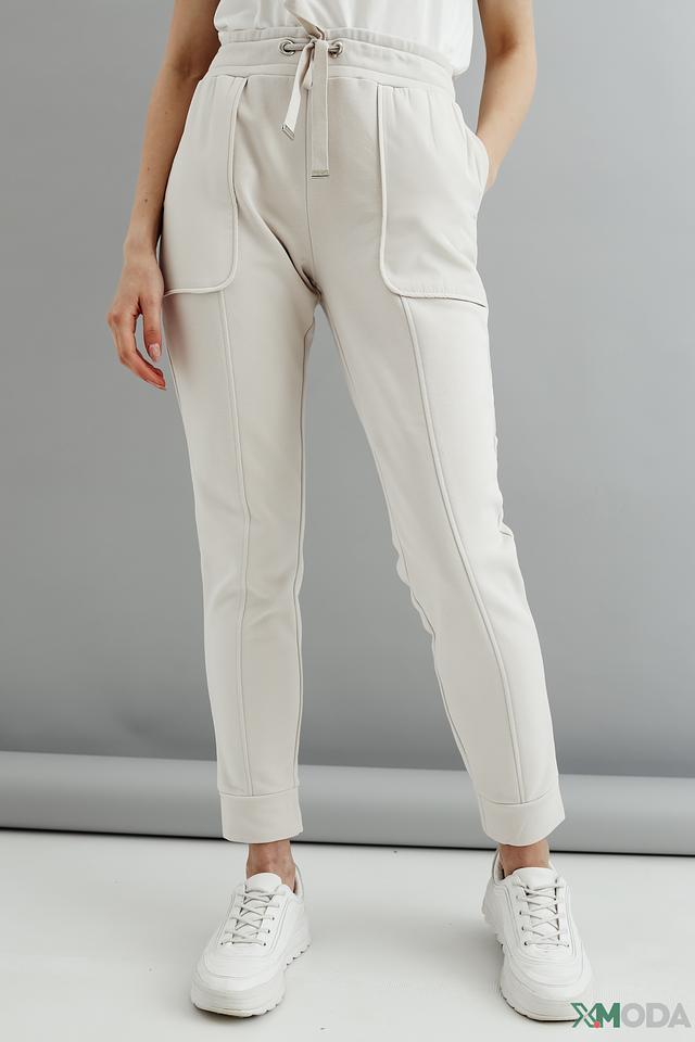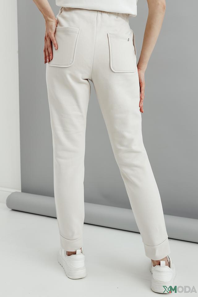 Дизайн брюк дополнен боковыми карманами и манжетами внизу, что придает им современный и завершенный вид. Цвет брюк – нежный бежевый, который легко сочетается с различными элементами одежды. Состав: 80% хлопок, 20% полиэстер.