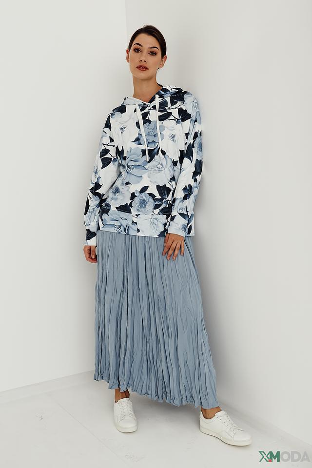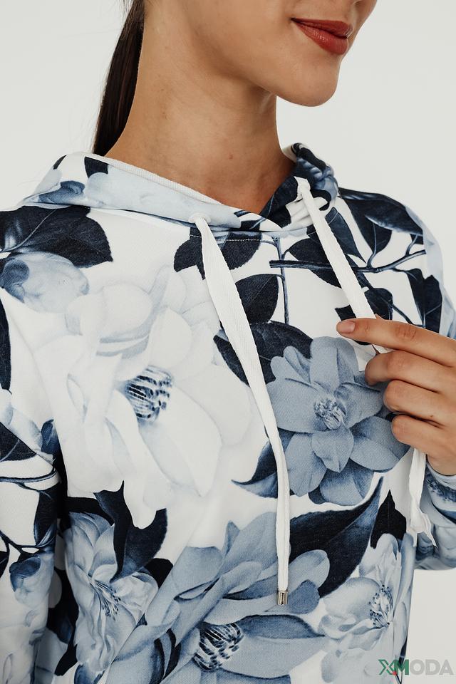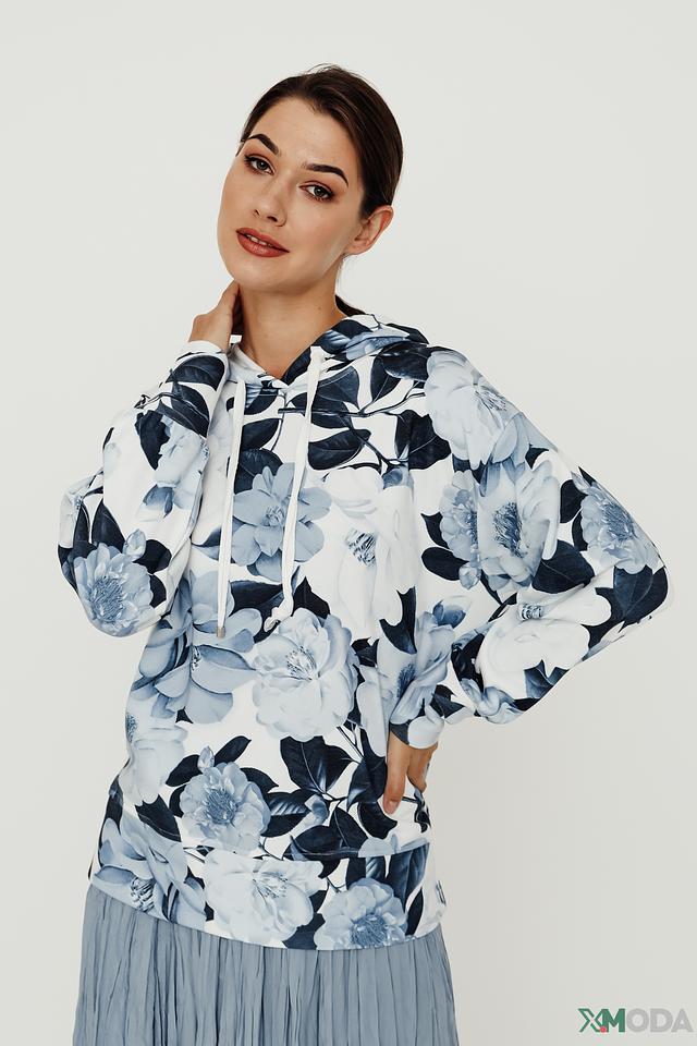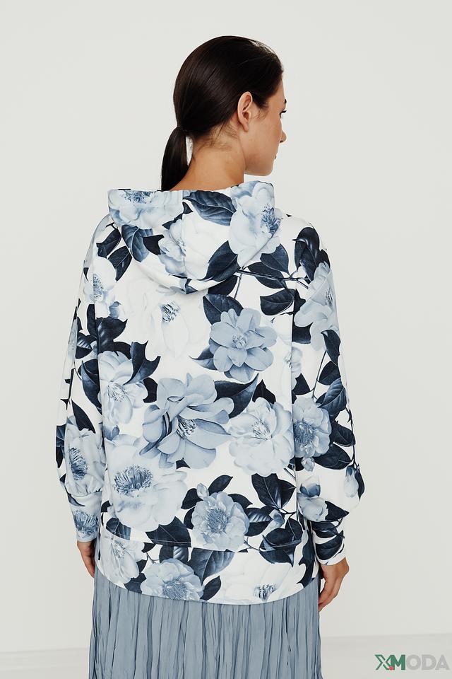 Женская толстовка Monari голубого и белого цвета с ярким цветочным принтом. Модель с капюшоном и длинными рукавами станет отличным дополнением к вашему образу. Состав: хлопок 80%, полиэстер 20%