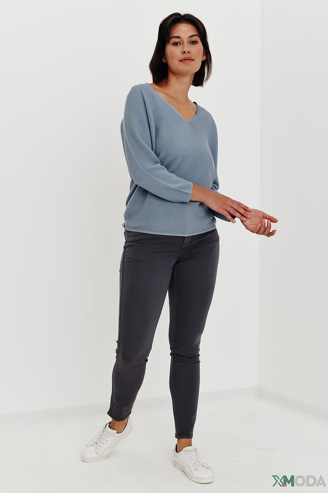Женский пуловер Monari голубого цвета с V-образным вырезом и рукавом 3/4. Изготовлен из мягкого и приятного к телу хлопка, идеально подходит для создания комфортных и стильных образов. Состав: хлопок 100%