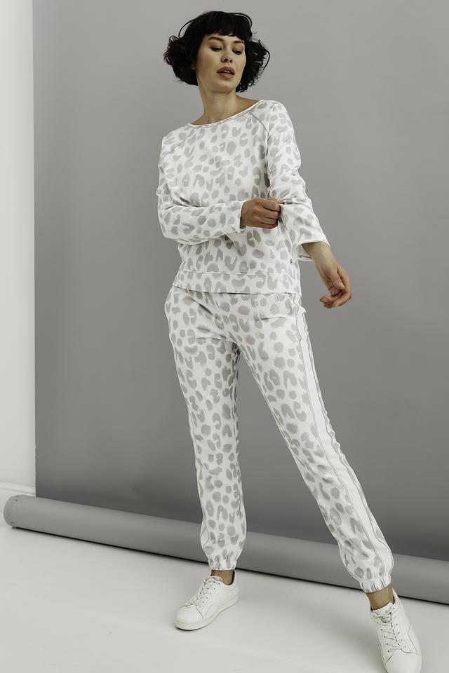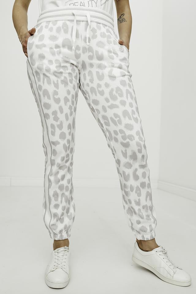 Эти брюки от Monari станут ярким акцентом в вашем гардеробе. Модель выполнена в белом цвете и украшена эффектным леопардовым принтом, который придает образу динамичность и индивидуальность.