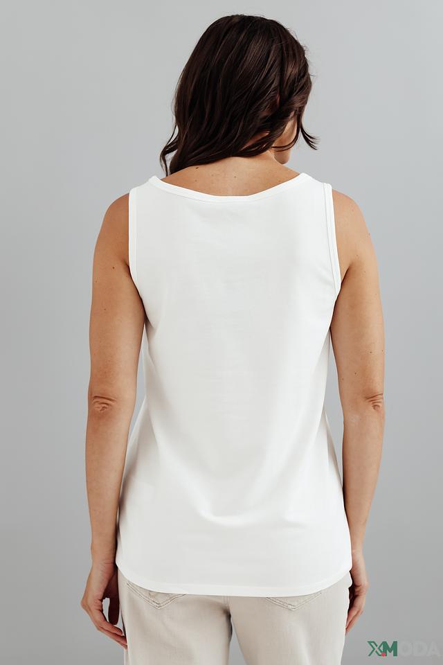 Этот стильный топ от Monari выполнен в белом цвете и украшен эффектным принтом "Pink Champagne", который добавляет образу игривости и свежести. Модель имеет классический крой с широкими бретелями и округлым вырезом горловины.