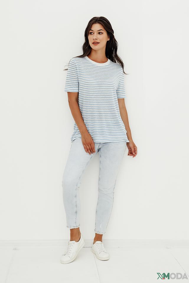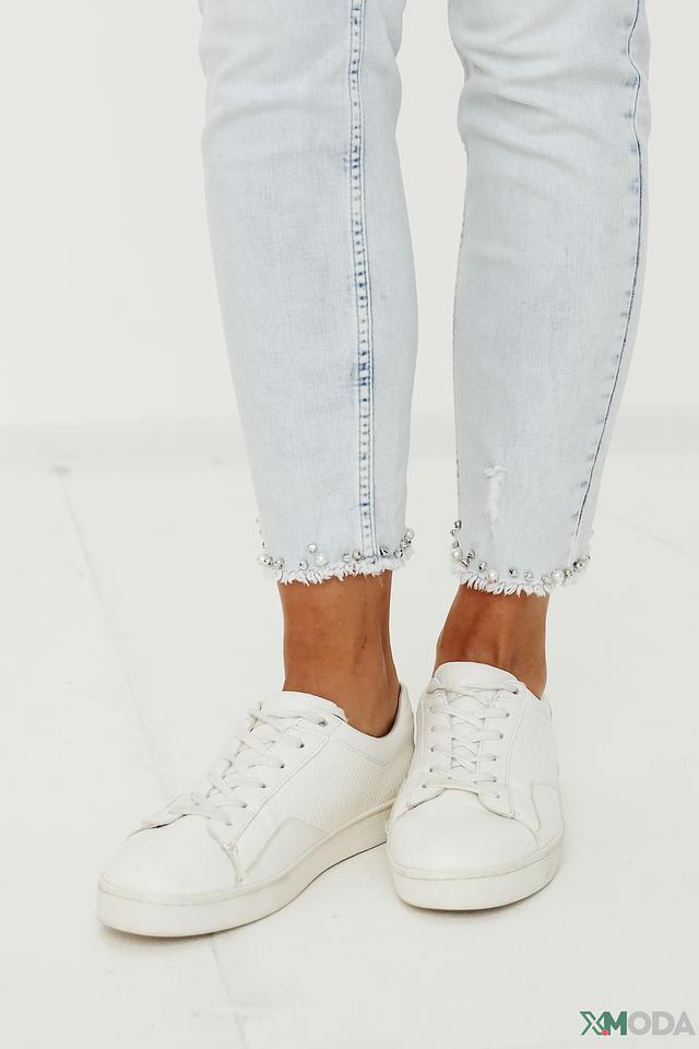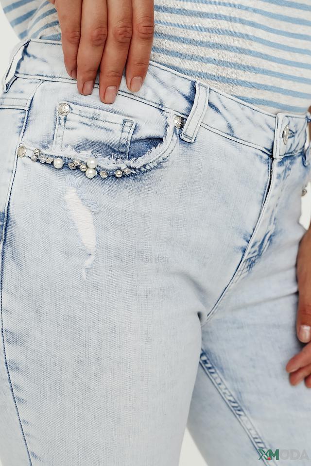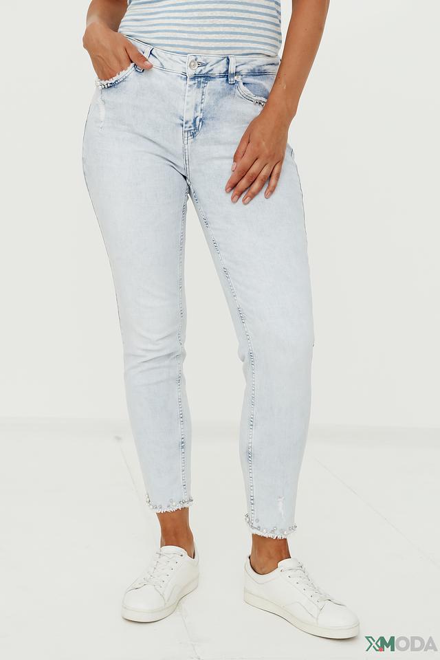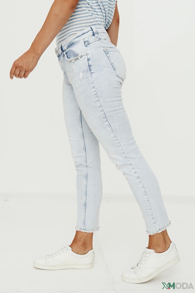 Светло-голубые джинсы Monari с эффектом потертостей и необработанным краем. Модель выполнена из качественного хлопка с добавлением эластана для комфортной посадки и свободы движений. Состав: хлопок 98%, эластан 2%
