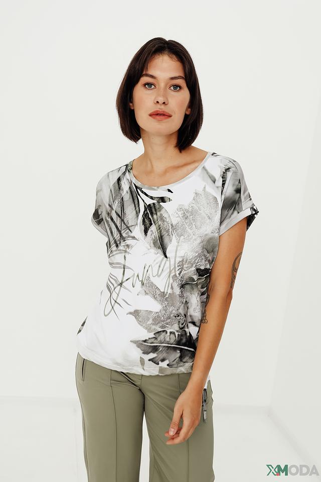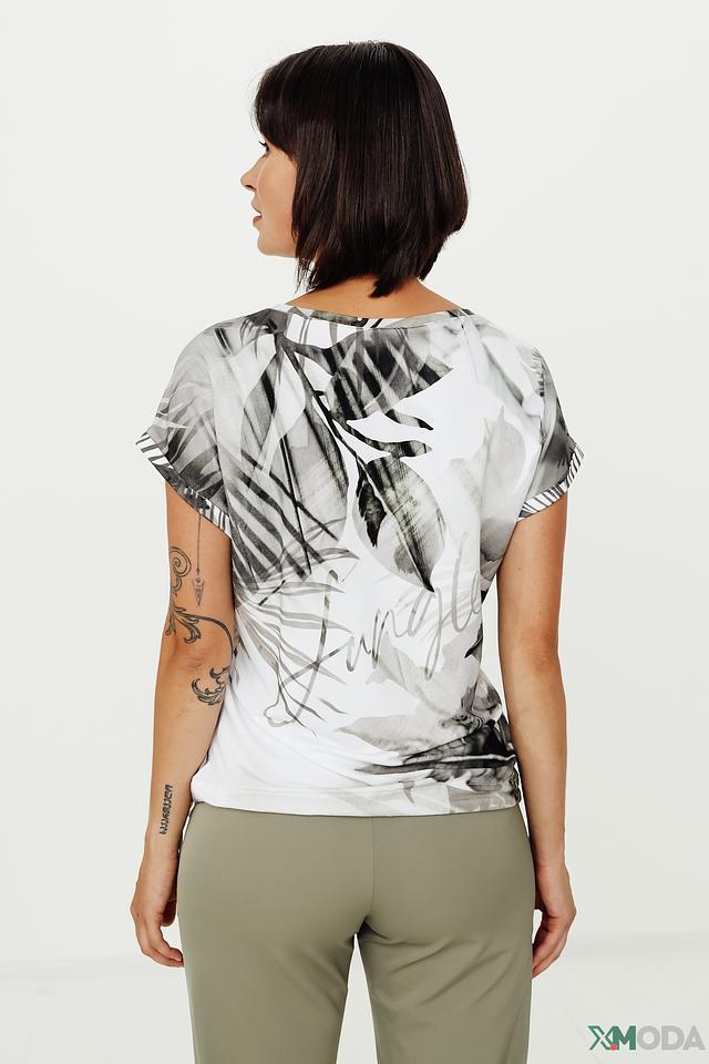Белая блуза Monari с оригинальным принтом "Jungle" станет стильным дополнением к вашему гардеробу. Модель свободного кроя с короткими рукавами выполнена из приятной на ощупь ткани. Состав: вискоза 45%, модал 45%, эластан 10%