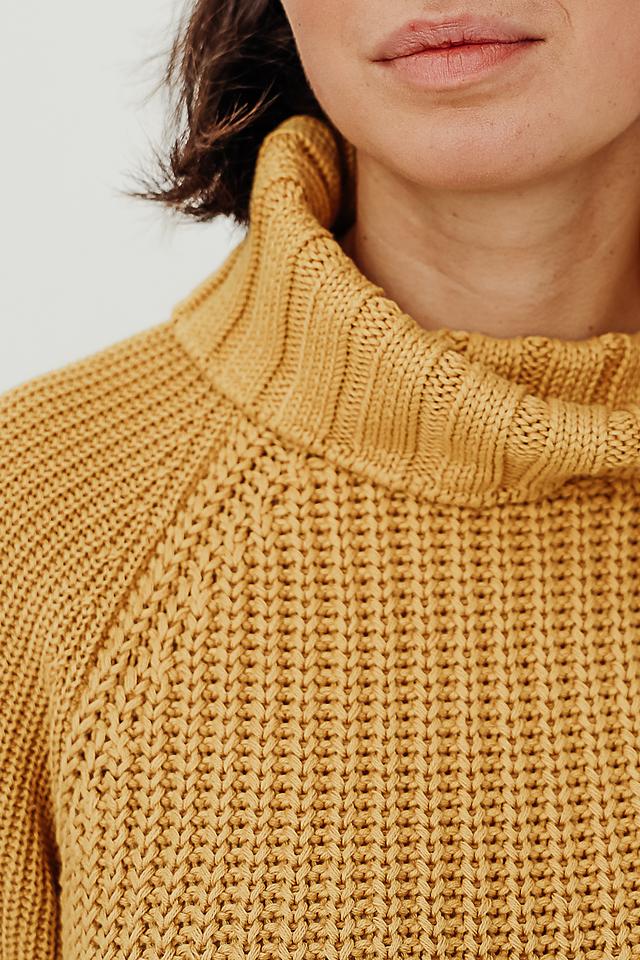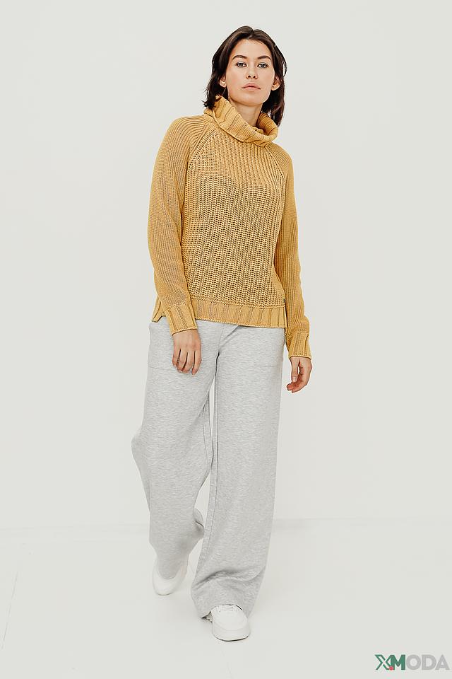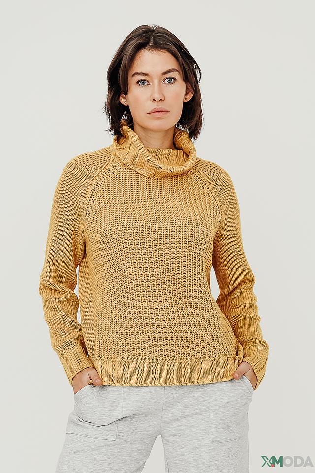 Крупная вязка придает изделию текстуру и объем. Горчичный цвет делает водолазку яркой и стильной. Она прекрасно сочетается с джинсами, брюками или юбками.