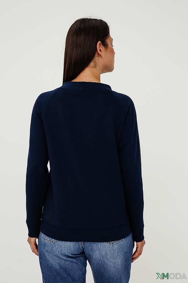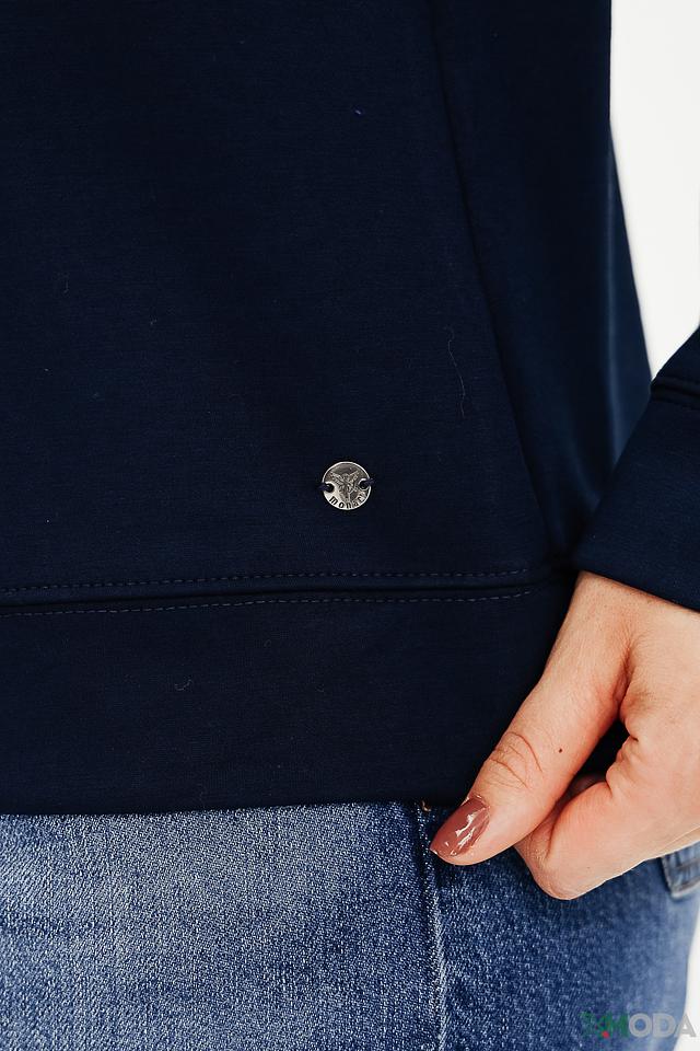 Синий джемпер от Monari с эффектным принтом и декоративной отделкой. Изготовлен из мягкого и приятного к телу сочетания полиэстера, вискозы и эластана, обеспечивающего комфорт при носке. Состав: полиэстер 55%, вискоза 38%, эластан 7%