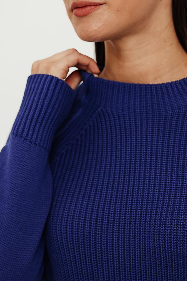 Особенностью данного пуловера являются декоративные вставки на плечах, которые добавляют ему оригинальности и стиля. Вырез горловины выполнен в форме лодочки, что делает его универсальным для разных типов фигуры.
