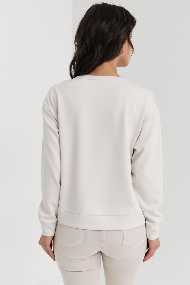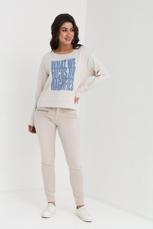 Женская толстовка Monari кремового цвета с ярким голубым принтом. Модель выполнена из мягкого и приятного к телу трикотажа, обеспечивающего комфорт в повседневной носке. Состав: полиэстер 55%, вискоза 38%, эластан 7%