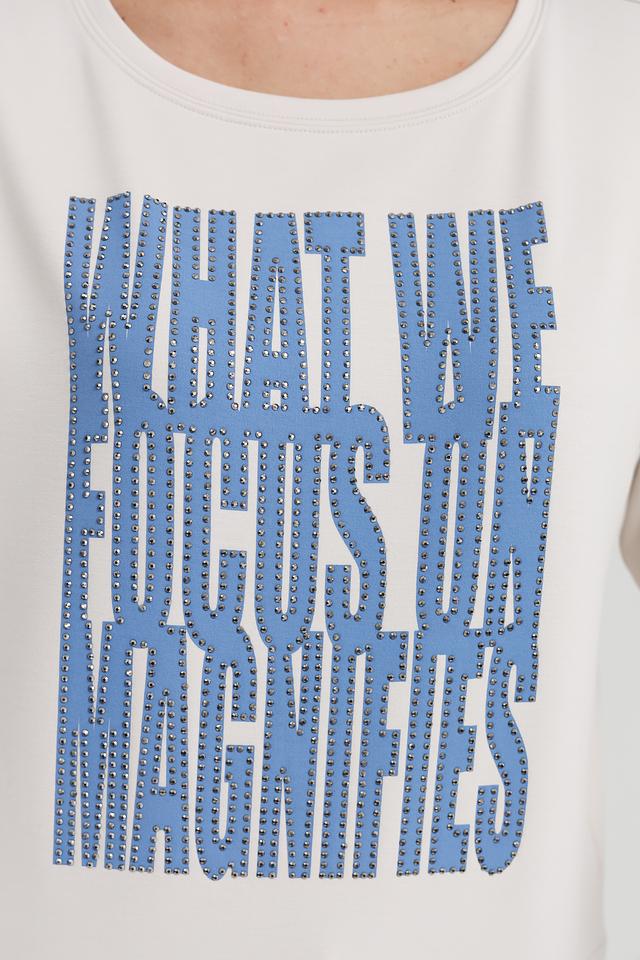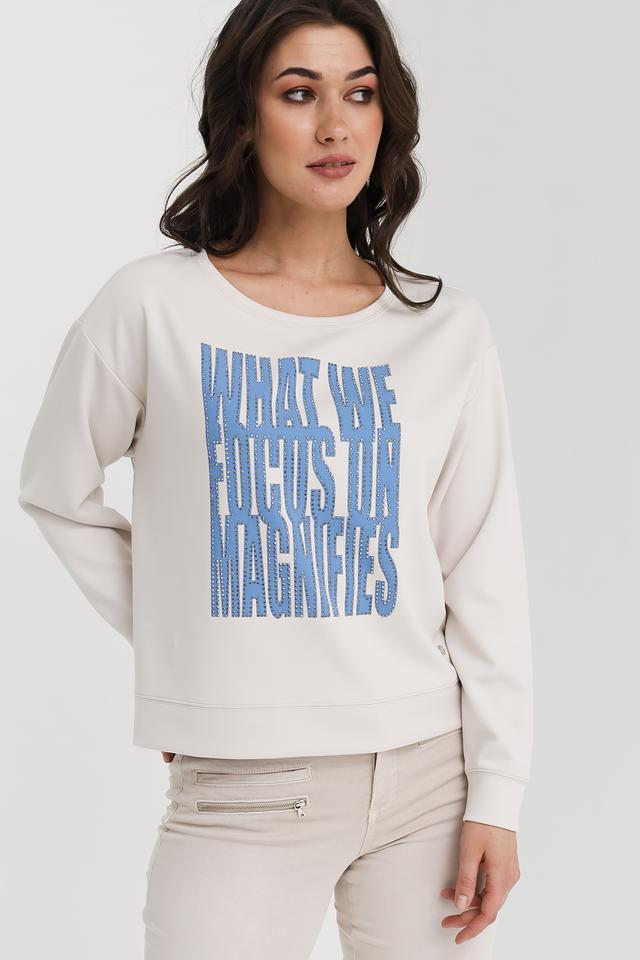 Эта стильная толстовка от Monari станет отличным дополнением к вашему гардеробу. Выполнена в кремовом цвете, она украшена эффектным голубым принтом с надписью, который придает ей современный и динамичный вид.