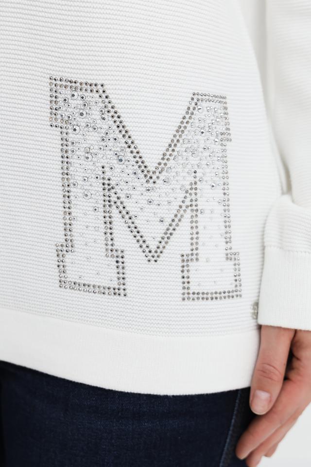 Белый пуловер Monari с V-образным вырезом украшен мерцающим логотипом. Изготовлен из мягкого хлопка, обеспечивающего комфорт и удобство в носке. Идеальный выбор для создания стильного повседневного образа. Состав: хлопок 100%