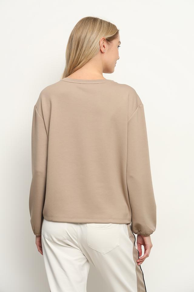 Бежевая толстовка Monari с оригинальным принтом и округлым вырезом горловины. Модель выполнена из мягкого и приятного к телу трикотажа, обеспечивающего комфорт в повседневной носке. Стильный и современный образ для любого случая. Состав: полиэстер 55%, вискоза 38%, эластан 7%