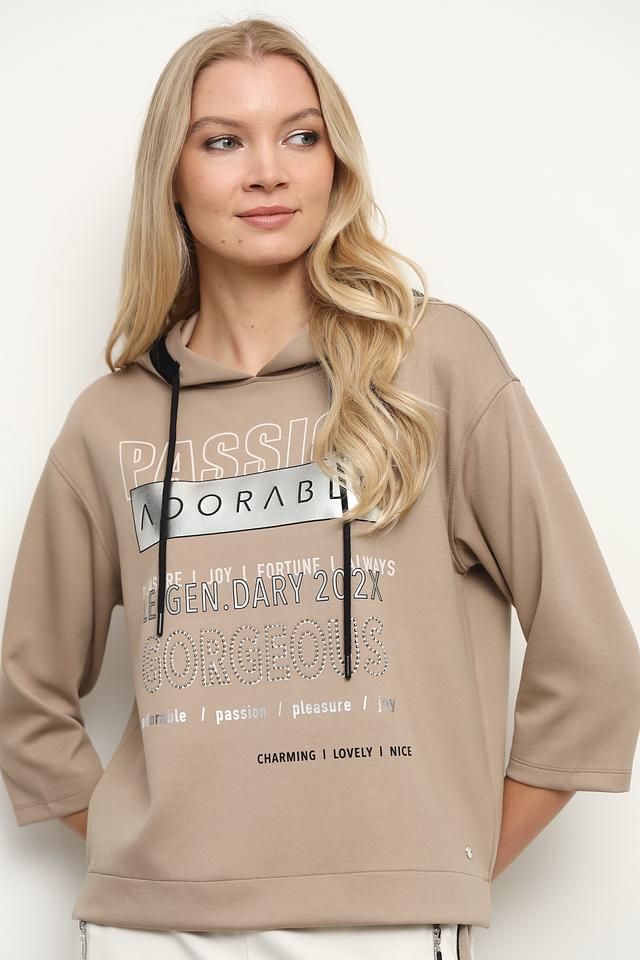 Бежевая толстовка Monari с эффектным принтом и капюшоном станет стильным дополнением к вашему гардеробу. Модель выполнена из мягкого и приятного к телу трикотажа, обеспечивающего комфорт в течение дня. Состав: полиэстер 55%, вискоза 38%, эластан 7%