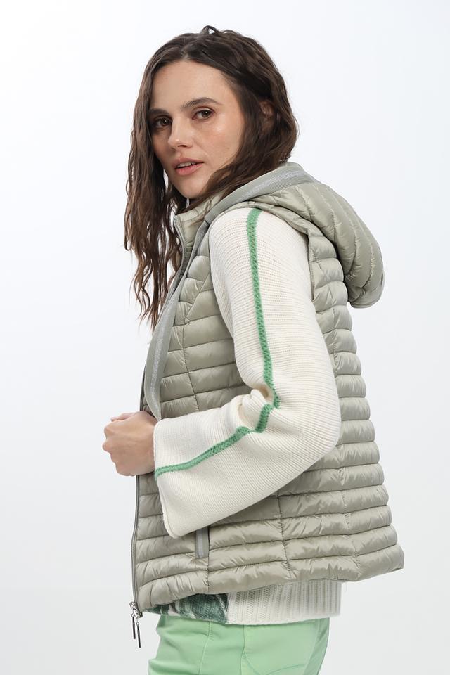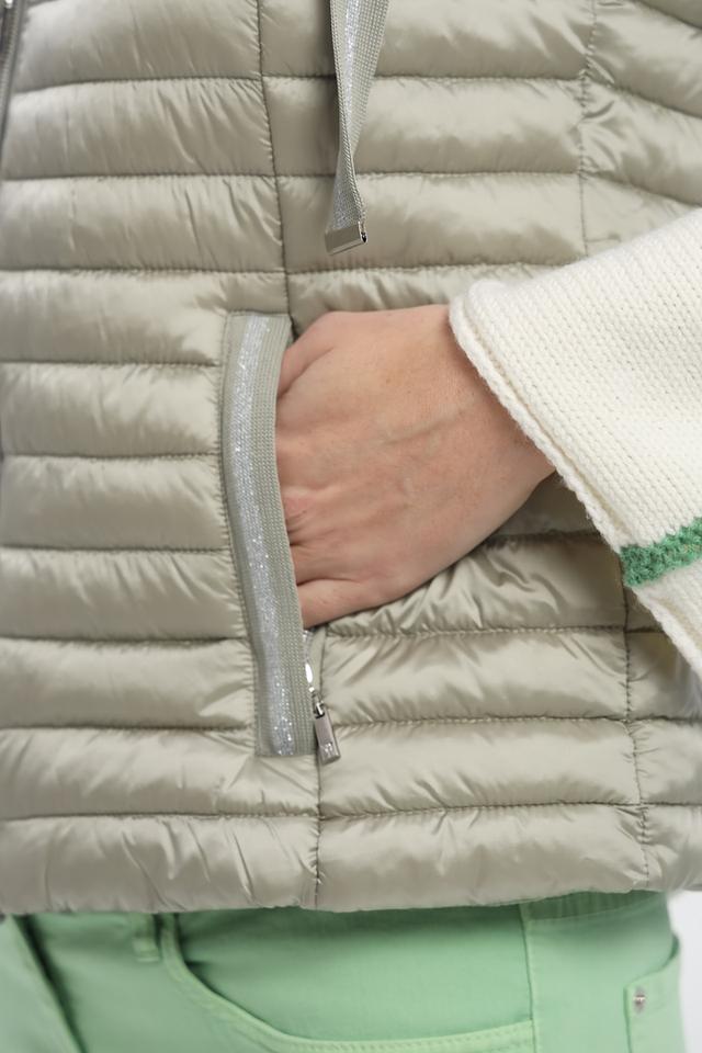 Этот стеганый жилет от Monari станет отличным выбором для создания многослойных образов в прохладную погоду. Жилет выполнен в нежном бежевом цвете, который легко сочетается с различными элементами гардероба.