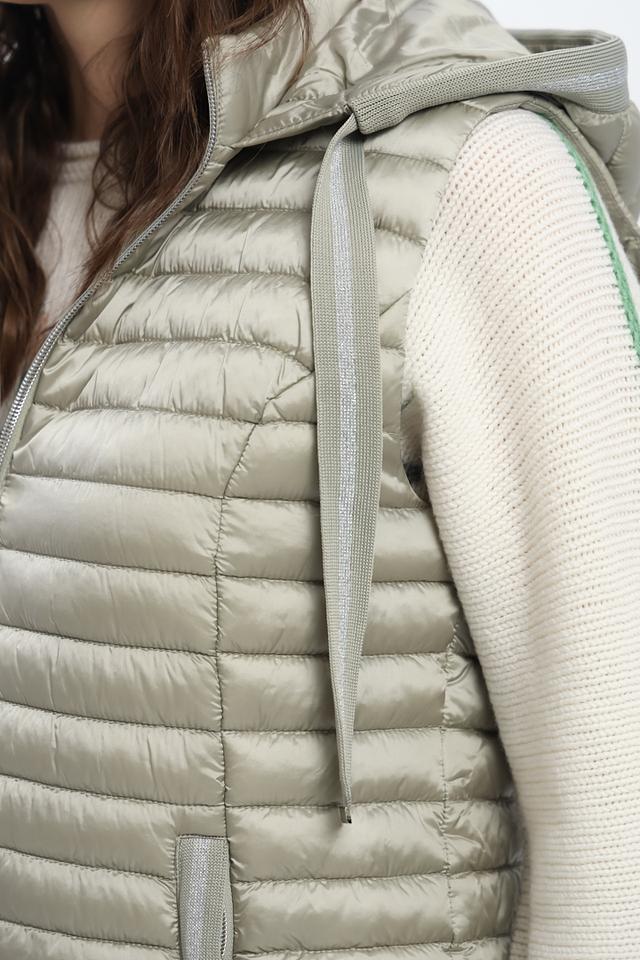 Модель имеет удобный капюшон, который защитит от ветра и легкого дождя. Застежка-молния позволяет быстро и легко надевать и снимать жилет. Стеганая текстура придает изделию современный и стильный вид.