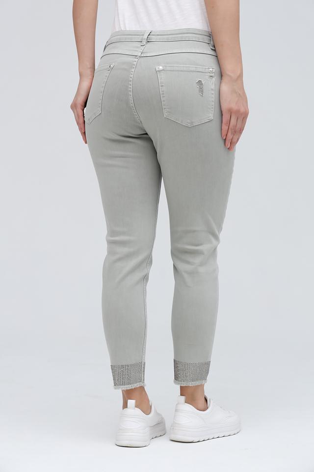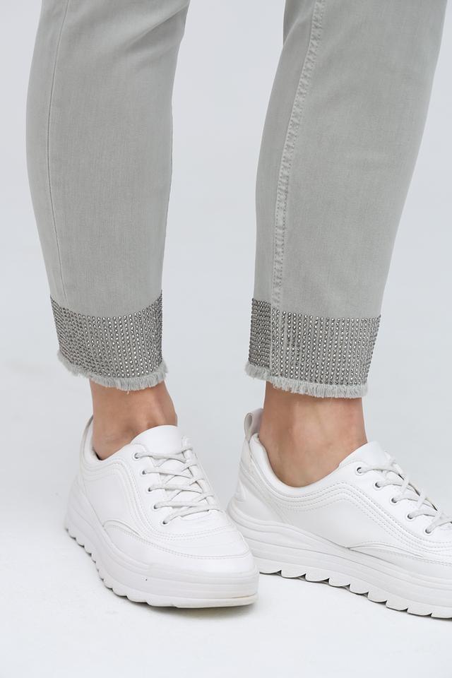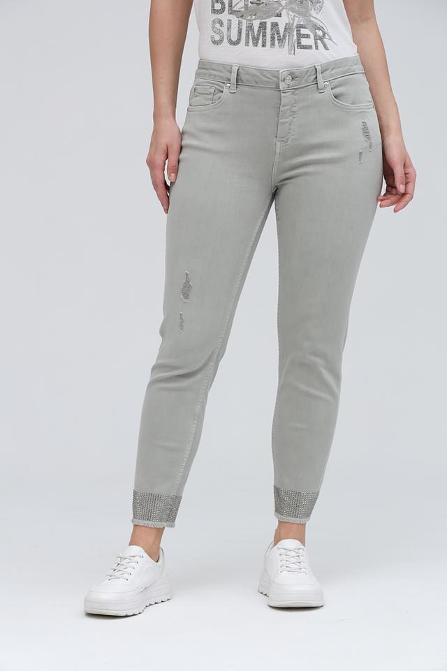 Серые джинсы Monari – это стильное сочетание комфорта и актуального дизайна. Модель выполнена с эффектом потертостей и декорирована стразами на щиколотке, что придает образу дерзкий и современный вид. Состав: хлопок 98%, эластан 2%. Состав: хлопок 98%, эластан 2%