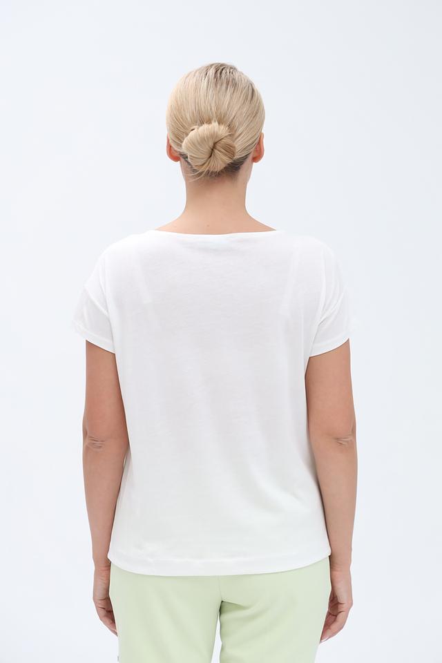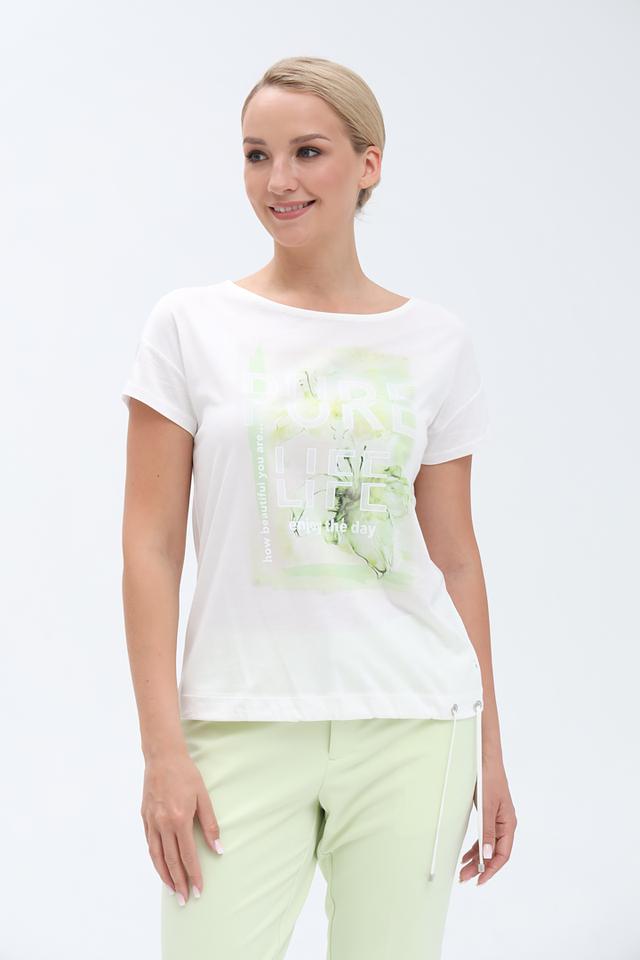 Белая футболка Monari с оригинальным принтом – стильное и комфортное решение для повседневного образа. Изготовлена из мягкого хлопка с модалом, обеспечивающего приятные ощущения на коже. Состав: хлопок 50%, модал 50%