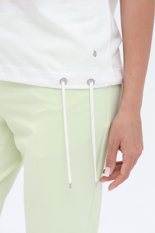 На боковой части футболки расположены шнурки, которые можно использовать для создания более приталенного силуэта или для добавления акцента в образ. Состав ткани: 50% хлопок, 50% модал. Эта футболка идеально подойдет для создания повседневных образов в стиле casual.
