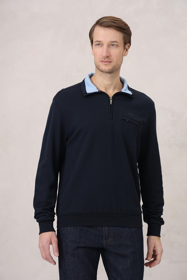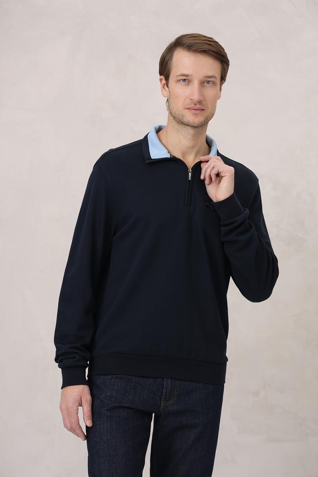 Мужской джемпер Monte Carlo темно-синего цвета с короткой молнией и воротником-стойкой. Изготовлен из мягкого и приятного к телу сочетания хлопка и модала, обеспечивающего комфорт в носке. Состав: хлопок 50%, модал 50%