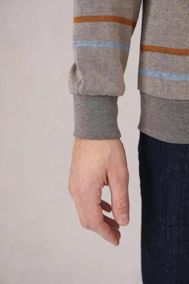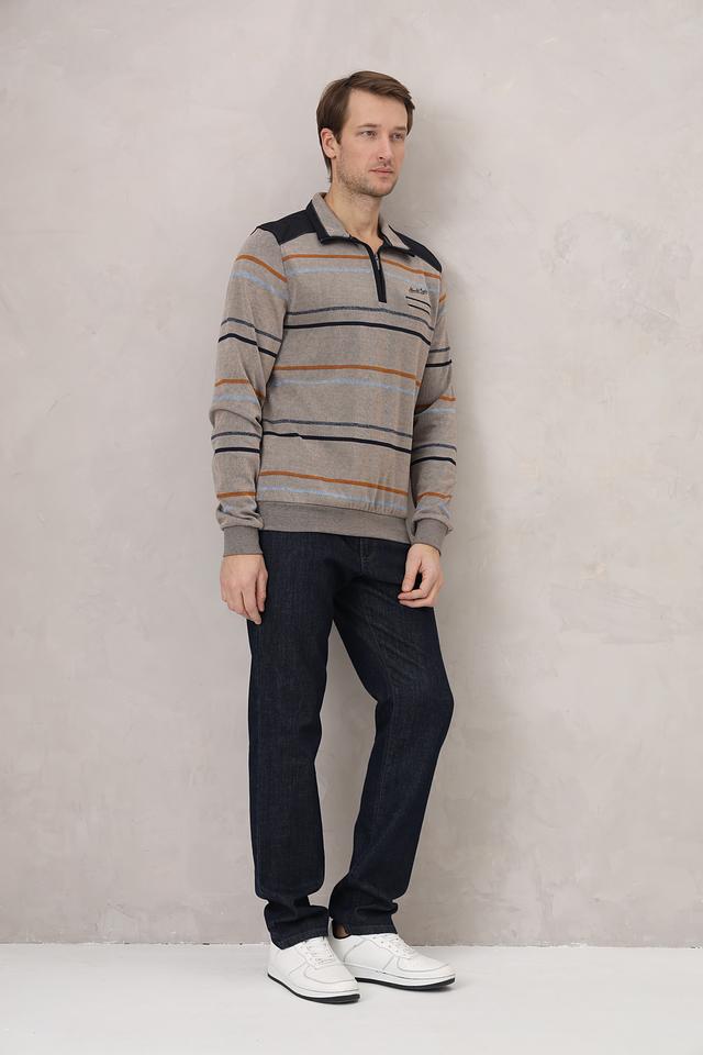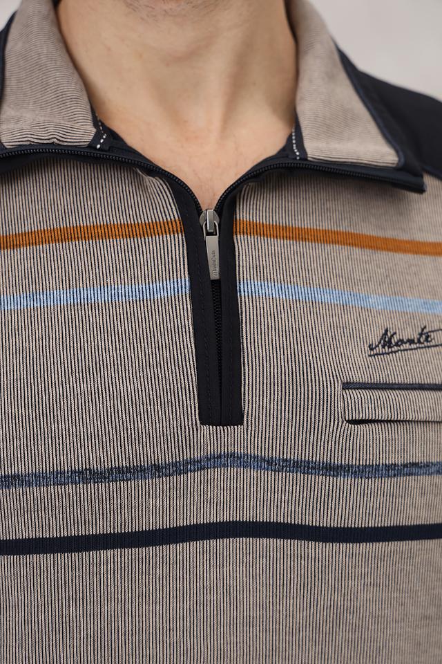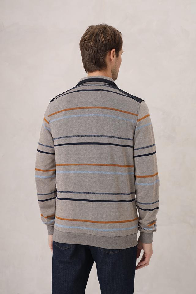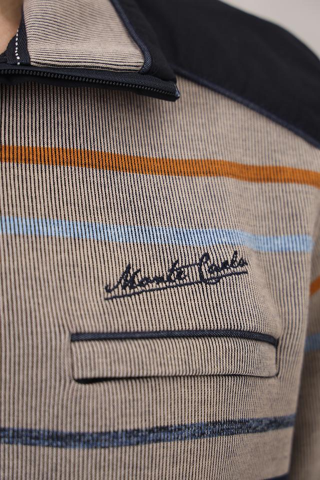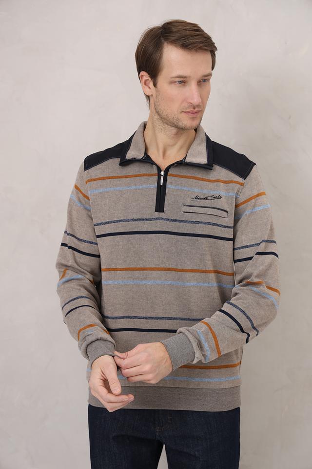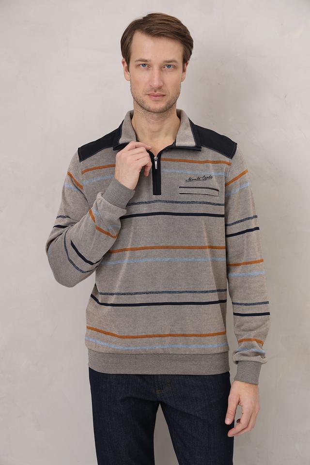 Мужской джемпер Monte Carlo серого цвета с полосатым узором и застежкой-молнией на воротнике. Изготовлен из 100% хлопка, обеспечивающего комфорт и удобство в носке. Состав: хлопок 100%