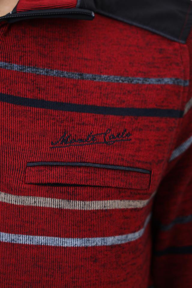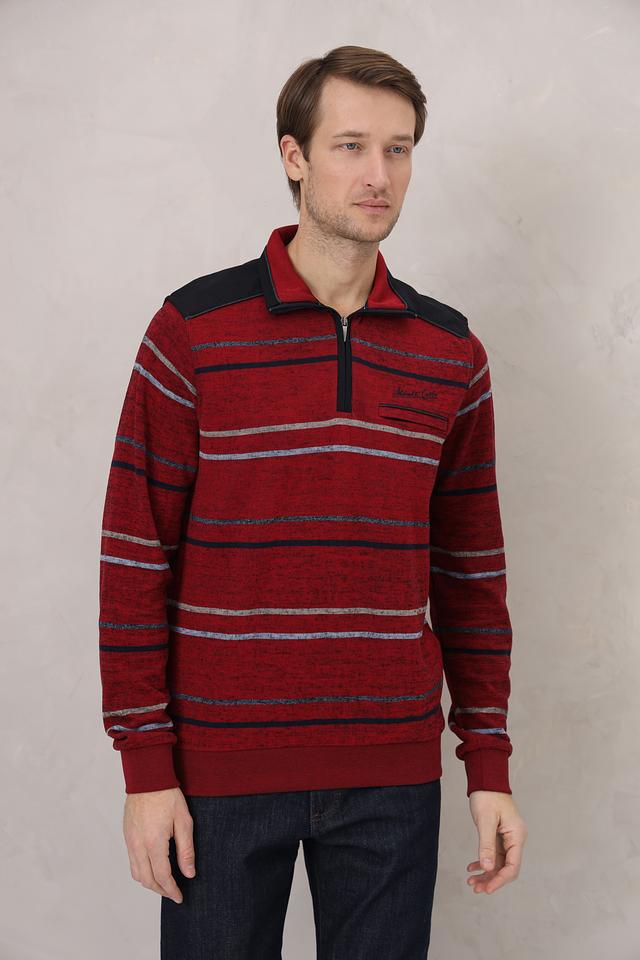 Мужской джемпер Monte Carlo бордового цвета с полосатым узором и воротником-стойкой на молнии. Изготовлен из 100% хлопка, обеспечивающего комфорт и удобство в носке. Состав: хлопок 100%