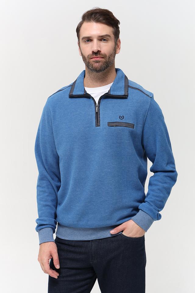 Мужской джемпер от Monte Carlo выполнен в голубом цвете. Модель имеет короткую молнию на горловине и функциональный нагрудный карман с логотипом бренда.
