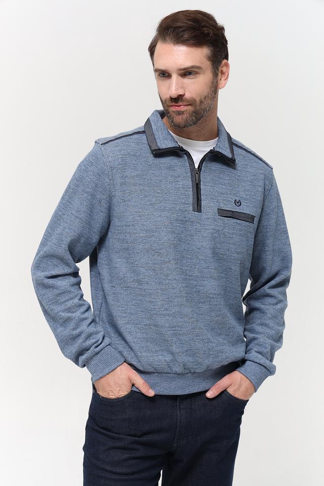 Мужской джемпер Monte Carlo синего цвета с воротником-стойкой и короткой молнией. Изготовлен из хлопка с добавлением полиэстера, что обеспечивает комфорт и практичность. Отличается текстурной вязкой и удобным кроем. Состав: хлопок 80%, полиэстер 20%