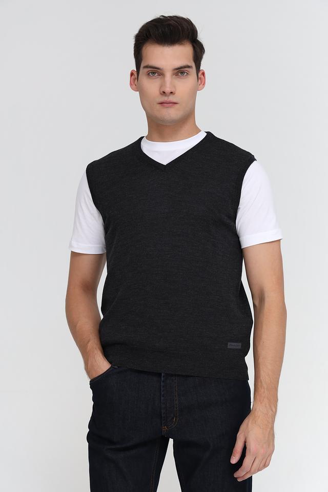 Жилет имеет классический V-образный вырез и прямой крой, который хорошо сочетается с различными стилями одежды. Цвет жилета – серый, меланжевый, что делает его универсальным и легко сочетаемым с другими элементами гардероба.