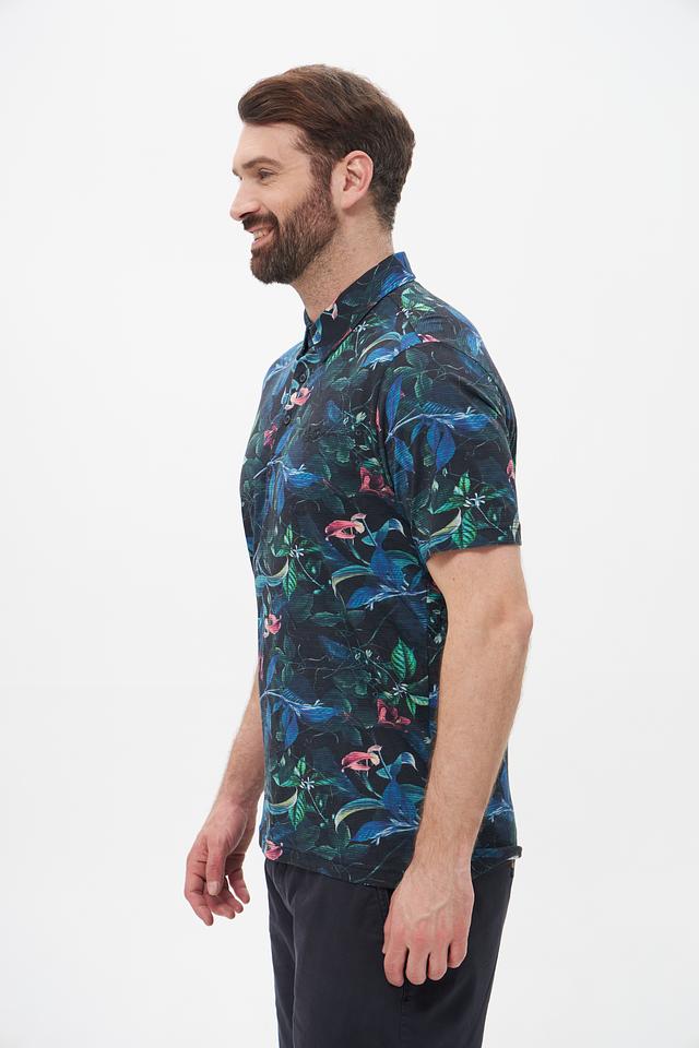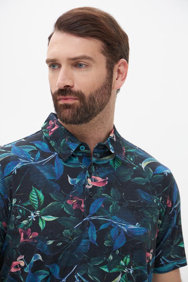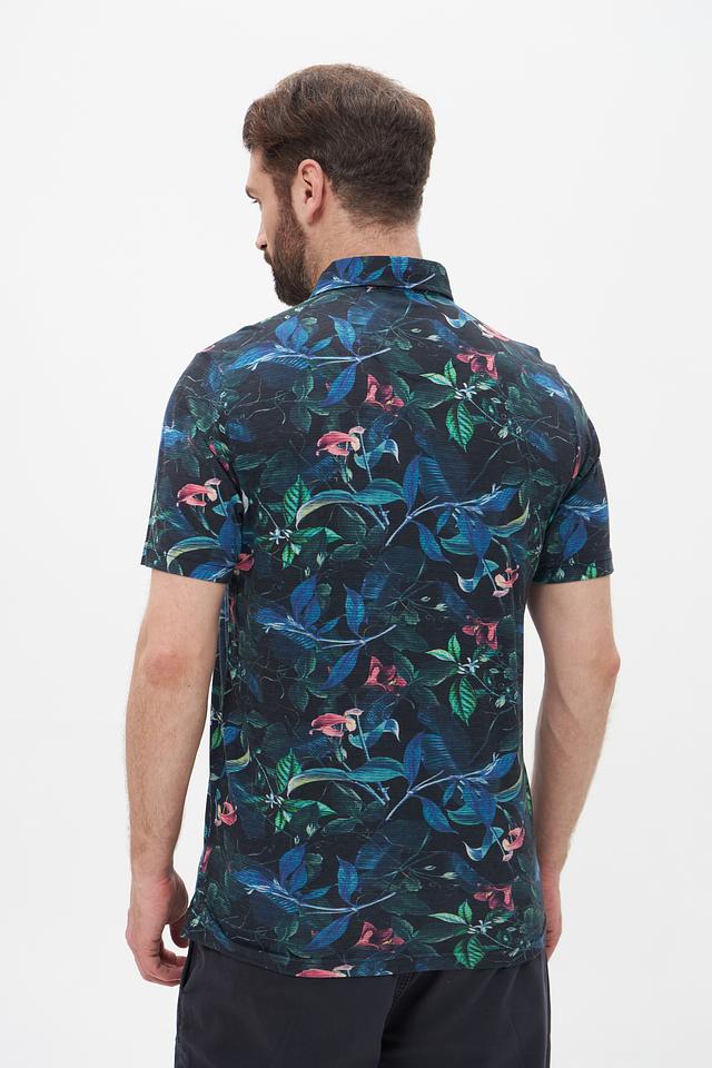 Мужское поло Monte Carlo тёмно-синего цвета с ярким тропическим принтом станет стильным дополнением к вашему гардеробу. Изготовлено из 100% хлопка, обеспечивающего комфорт и воздухопроницаемость. Состав: хлопок 100%