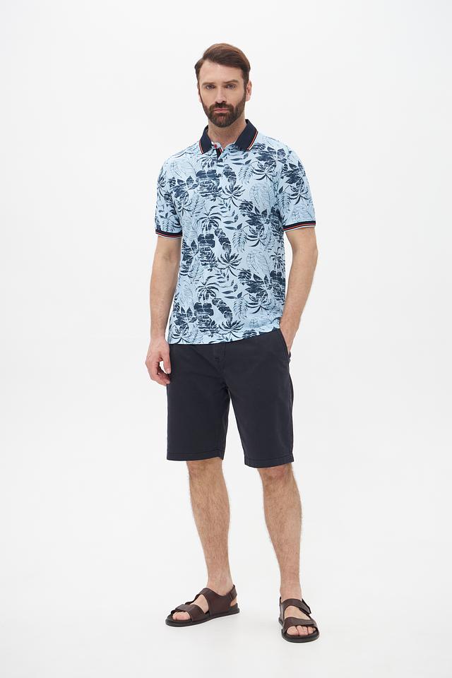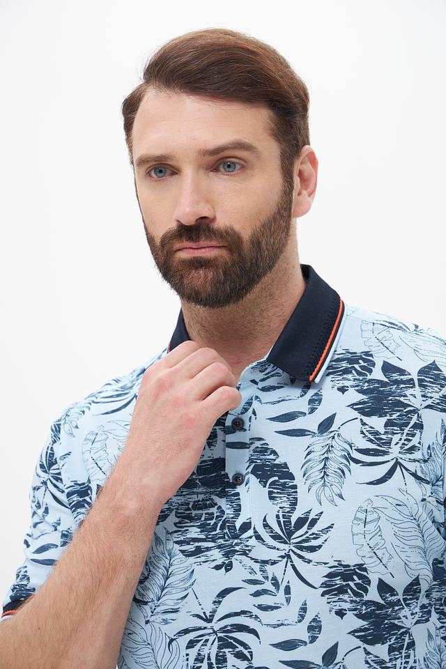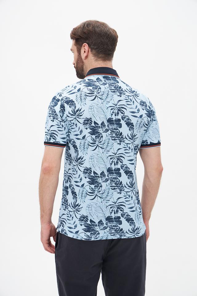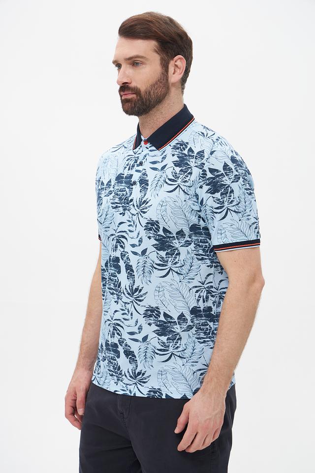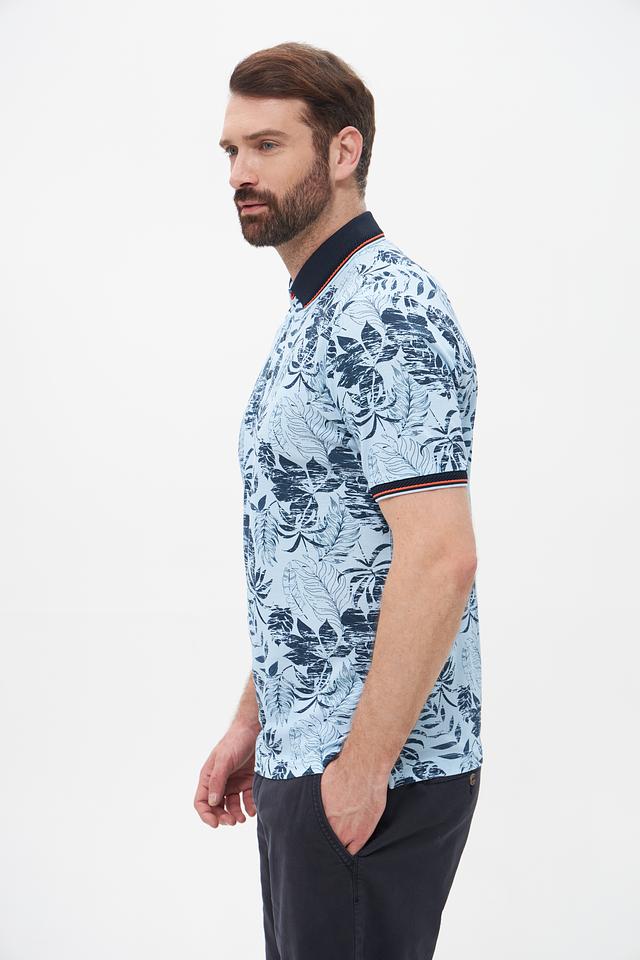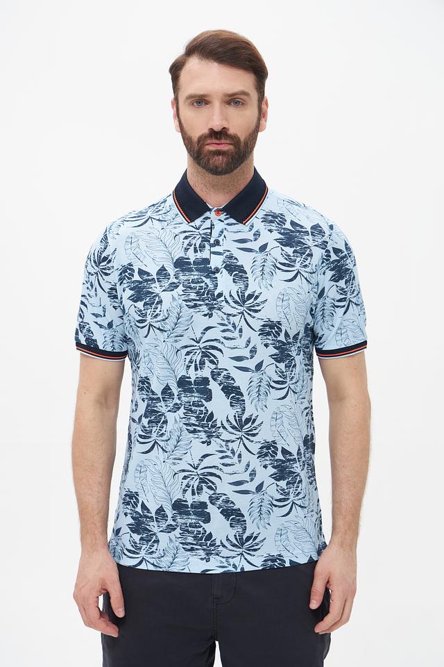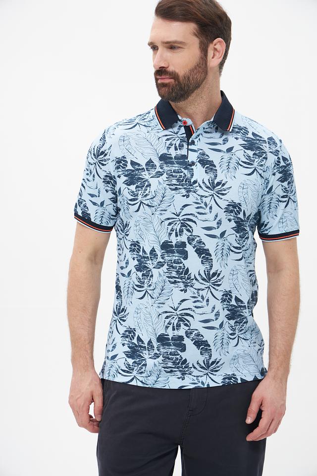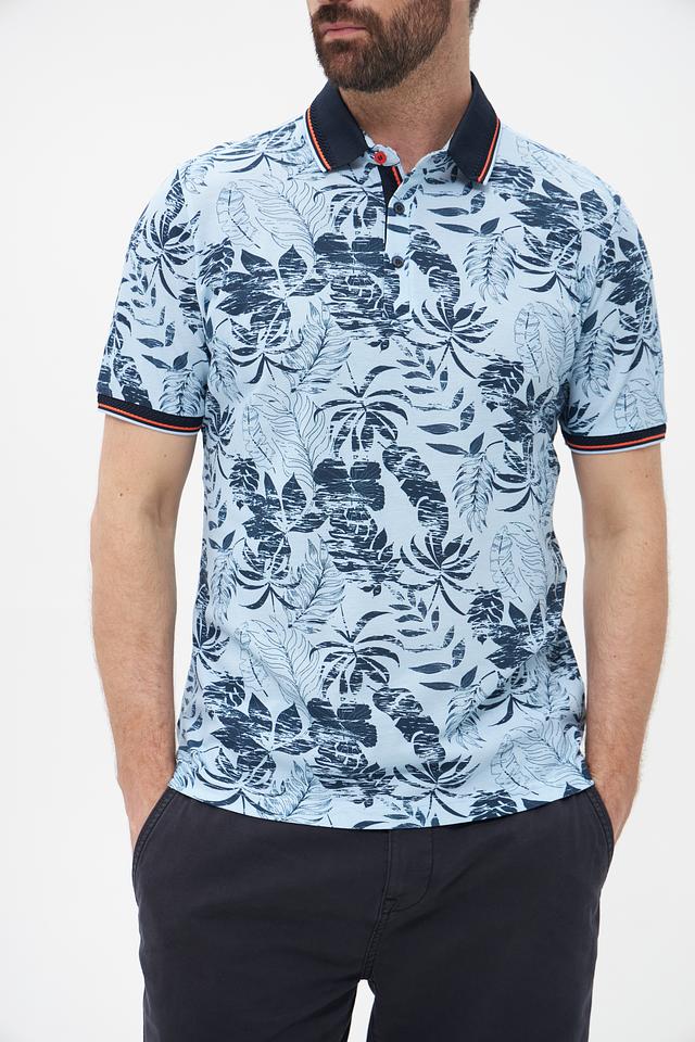 Мужское поло Monte Carlo голубого цвета с ярким тропическим принтом. Изготовлено из 100% хлопка, обеспечивающего комфорт и воздухопроницаемость. Отличный выбор для создания стильного и непринужденного образа. Состав: хлопок 100%