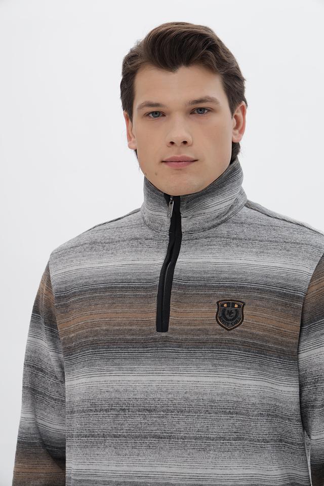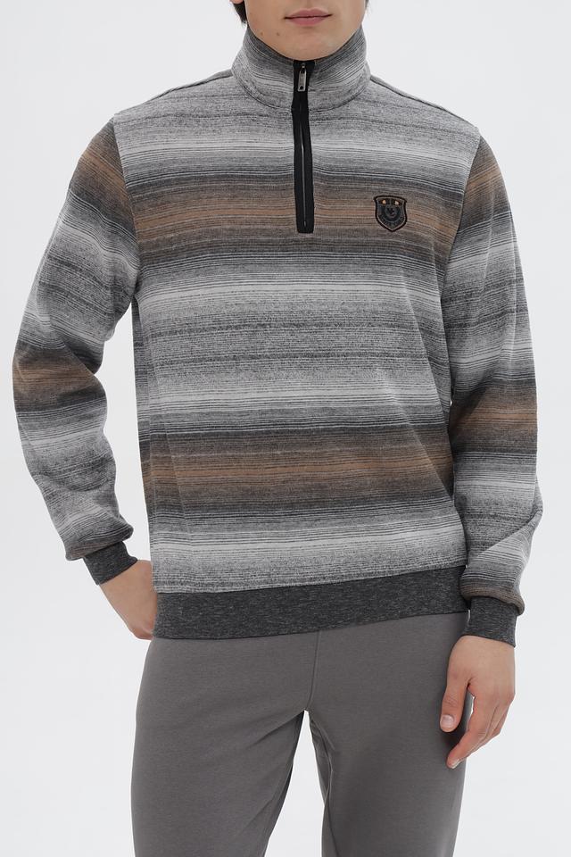 Мужской джемпер Monte Carlo серого цвета с полосатым узором и молнией на горловине. Изготовлен из хлопка с добавлением полиэстера для комфорта и долговечности. Состав: хлопок 80%, полиэстер 20%