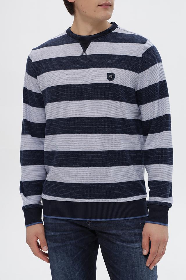 Мужской джемпер Monte Carlo синего и серого цвета с полосатым узором. Изготовлен из мягкого трикотажа с добавлением вискозы для комфорта и приятных тактильных ощущений. Отличный выбор для создания повседневного образа. Состав: полиэстер 46%, полиакрил 36%, вискоза 18%