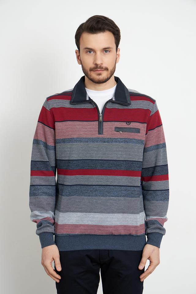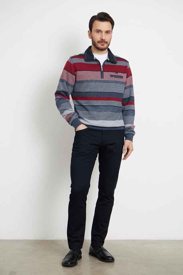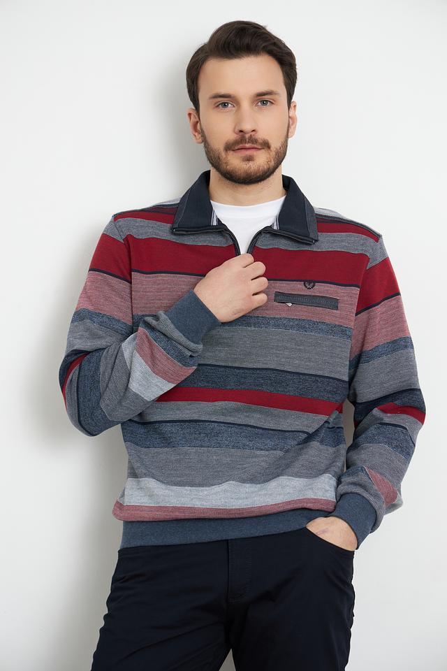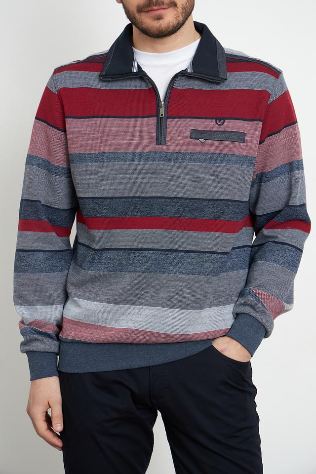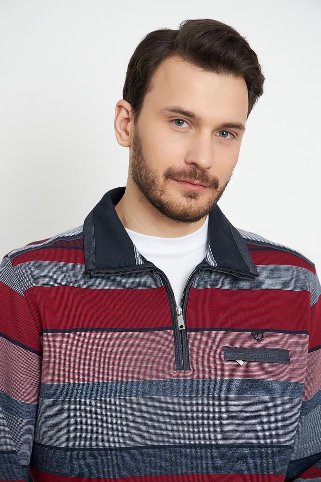 Мужской пуловер Monte Carlo бордового и серого цвета с полосатым узором и короткой молнией на горловине. Изготовлен из хлопка с добавлением полиэстера для комфорта и долговечности. Состав: хлопок 80%, полиэстер 20%